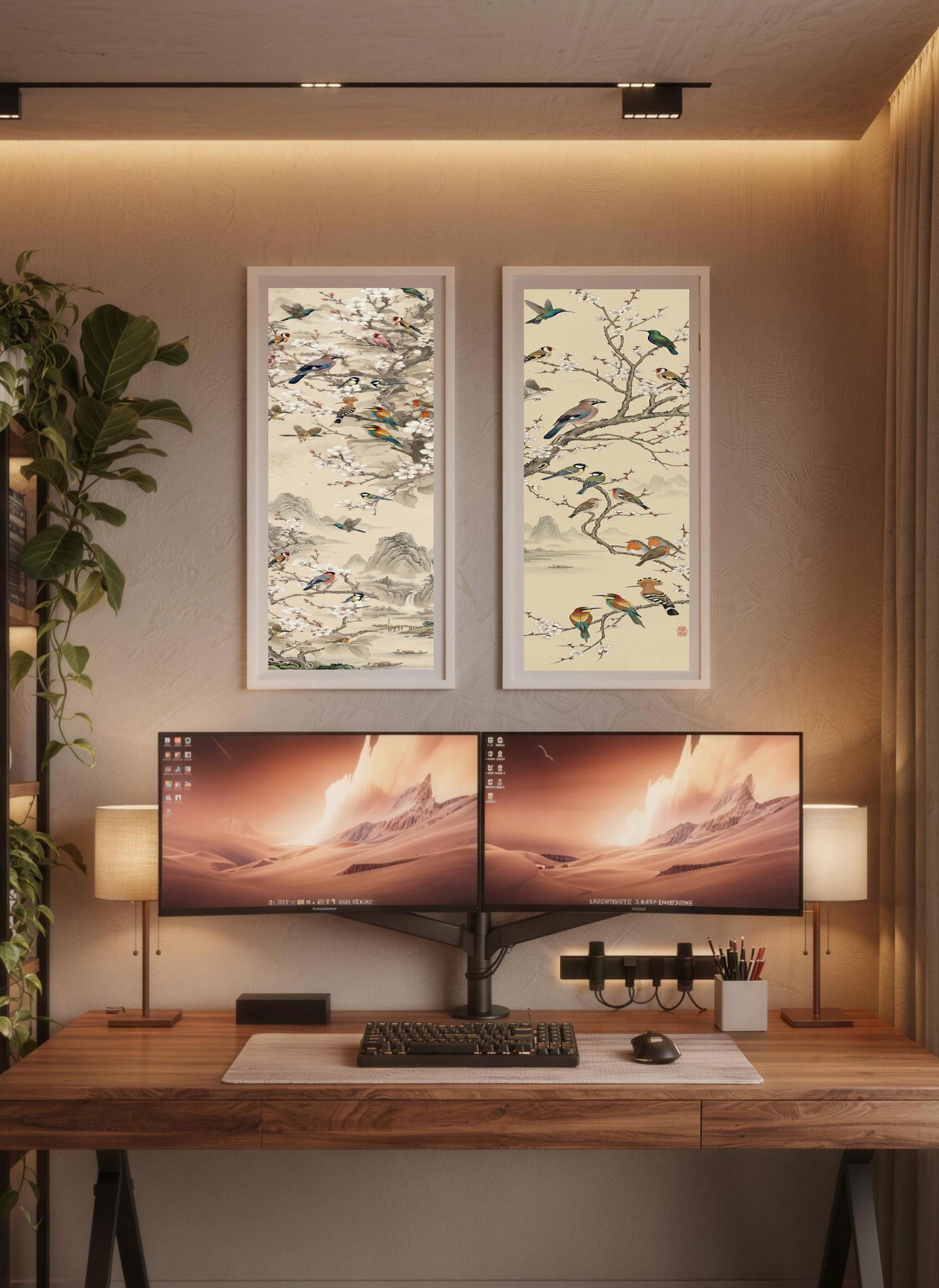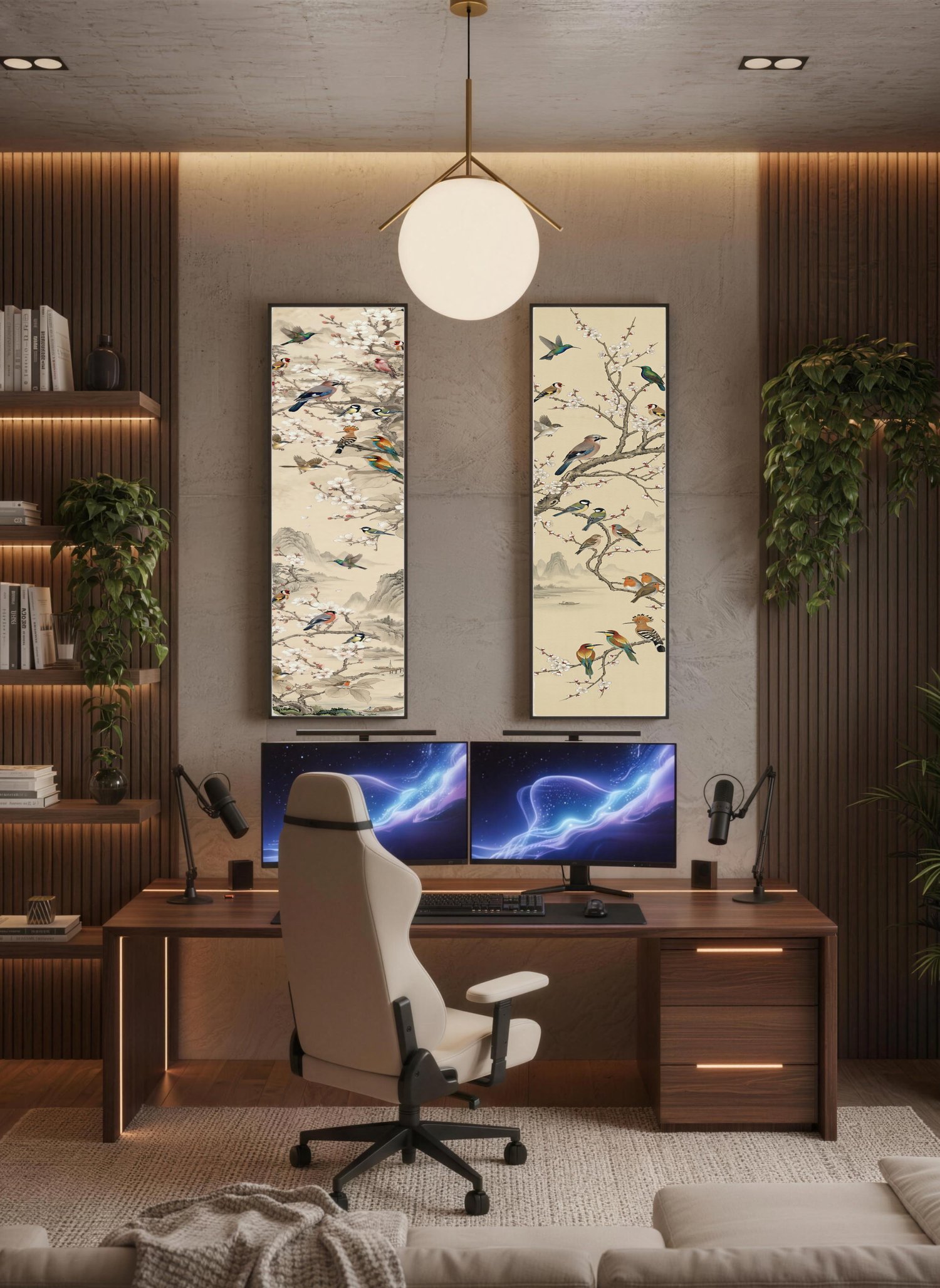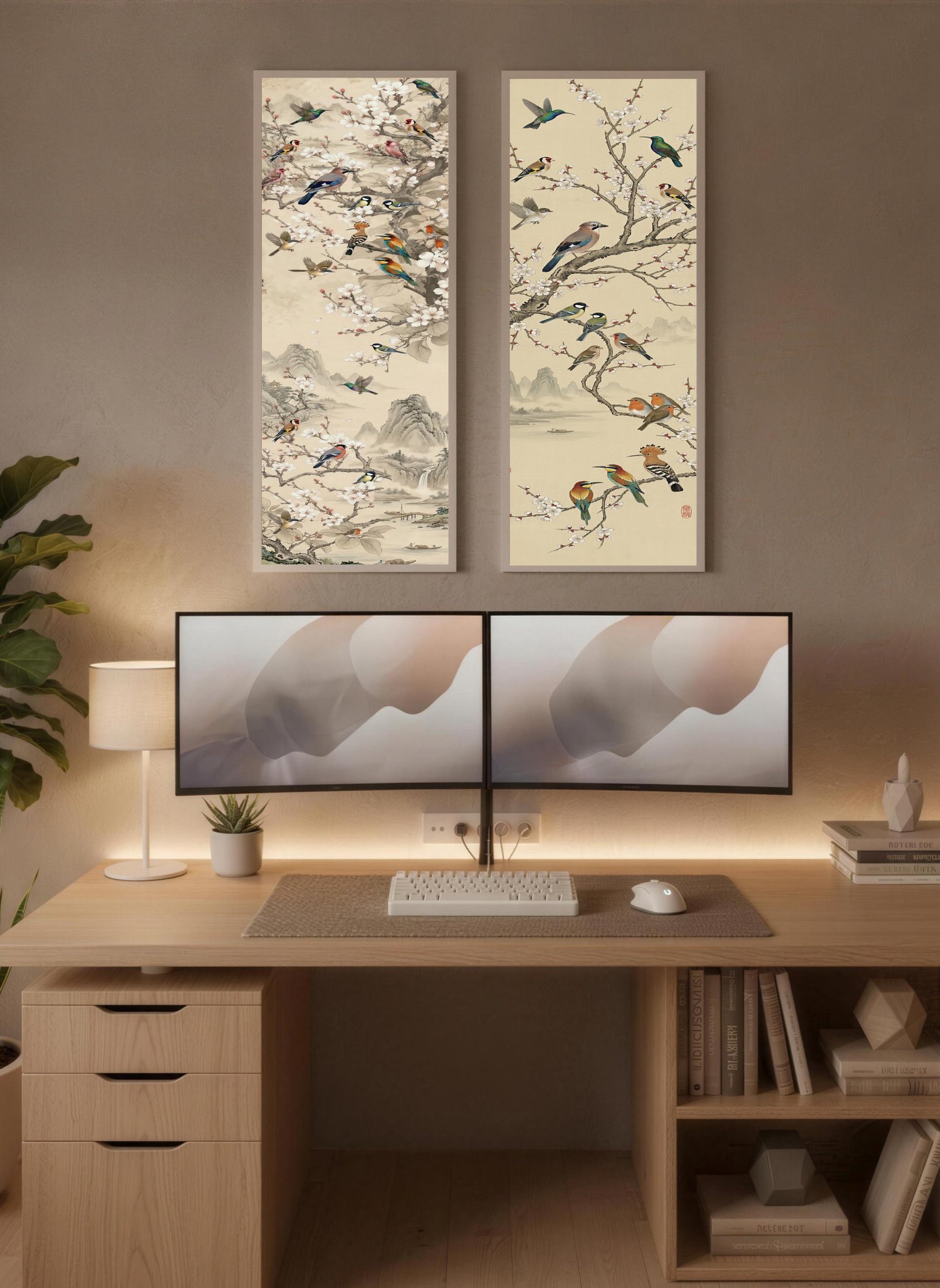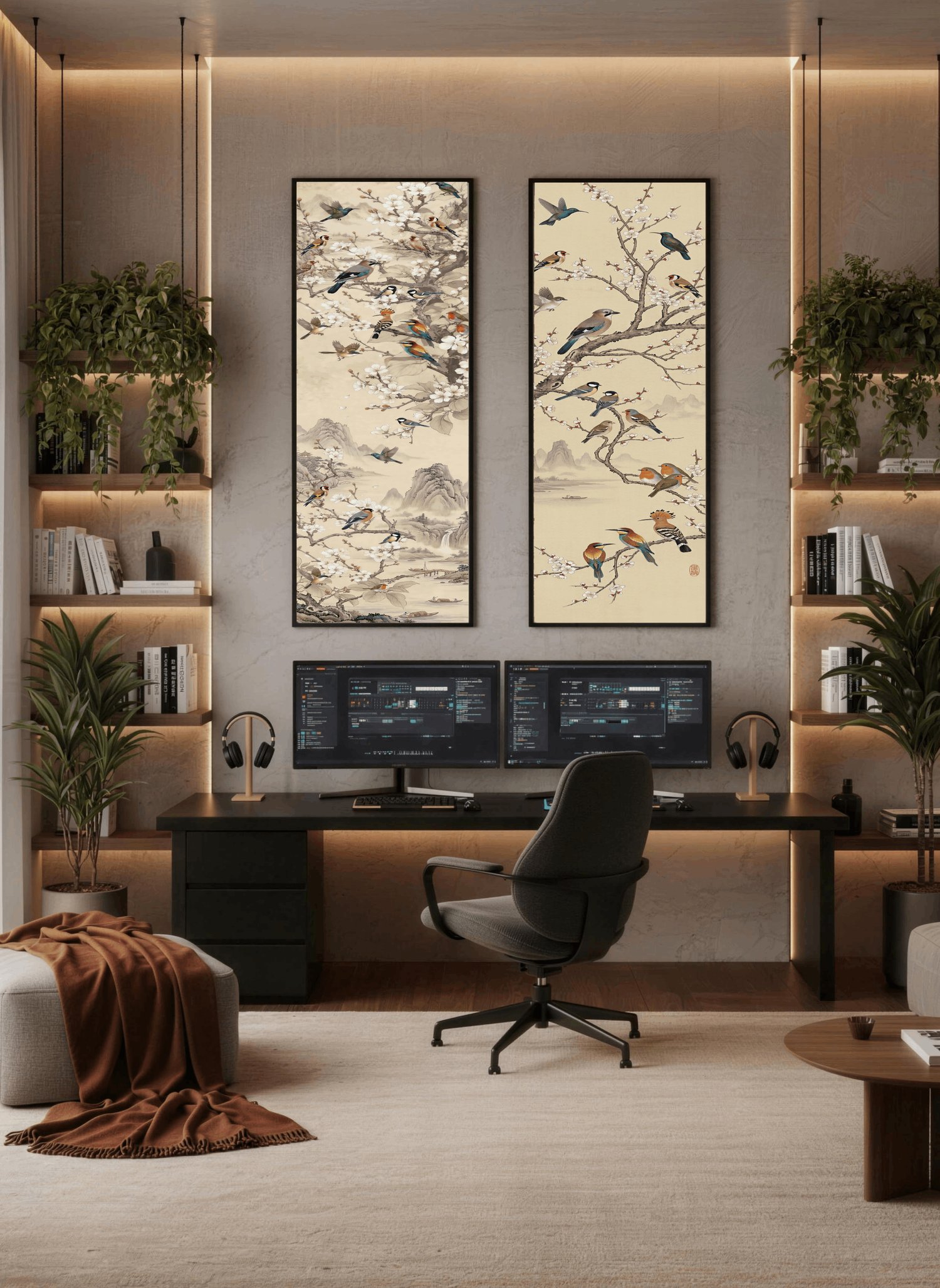 Song Birds Sakura - SIGNATURE LIMITED COLLECTION -Vertical Japanese Vintage Ink Series - UHQ Digital Lofi Anime Art Print | #47