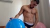 In this video the hot dominant Kyllan blow and burst 5 balloons.