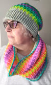 I used 2 mini skeins set from Leading Men Fiber Arts in OMG Neons! and one full skein of Spritely Endeavors, all on the Show Stopper base.