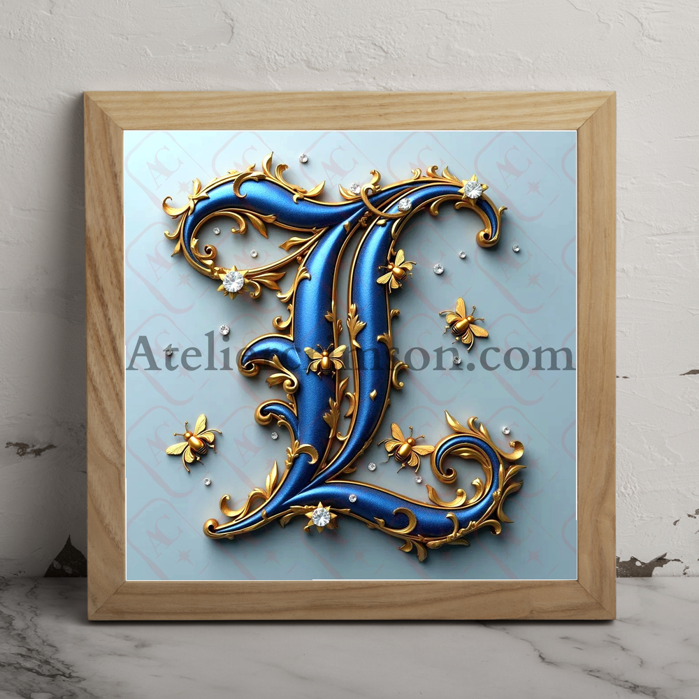 The letter L royal blue bees Download Now this high quality AI-generated image, perfect for adding a touch of tranquility and creativity to any space.
