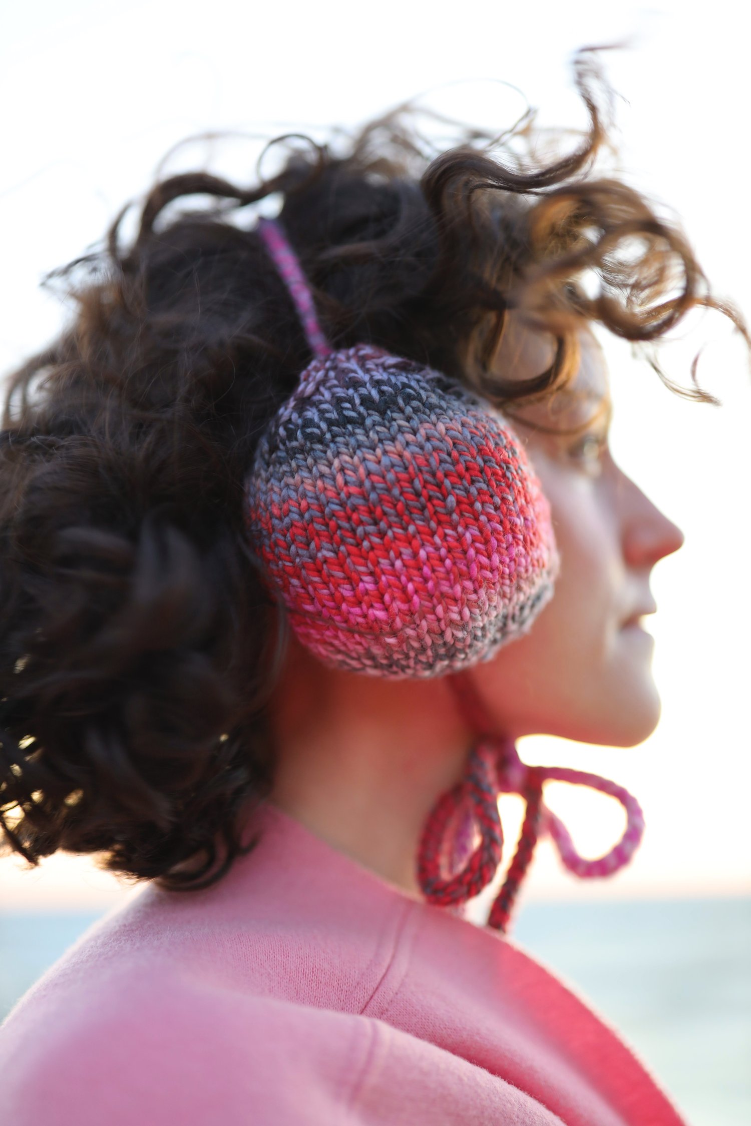 These oversized, stuffed earmuffs are knit in the round using Magic Loop with the option of written or charted instructions. We begin with Judy’s Magic Cast-On and work the earmuffs from the bottom up, stuff them and then finish by grafting the stitches together and threading the muffs onto an i-cord tie. The inner portion of the earmuffs use increases and decreases to shape an indentation for the ear and the height of each muff can be adjusted by sliding up or down on the i-cord. Let’s be extra cozy and cute while we sit on our tuffets wearing our muffets, eating our curds and whey!