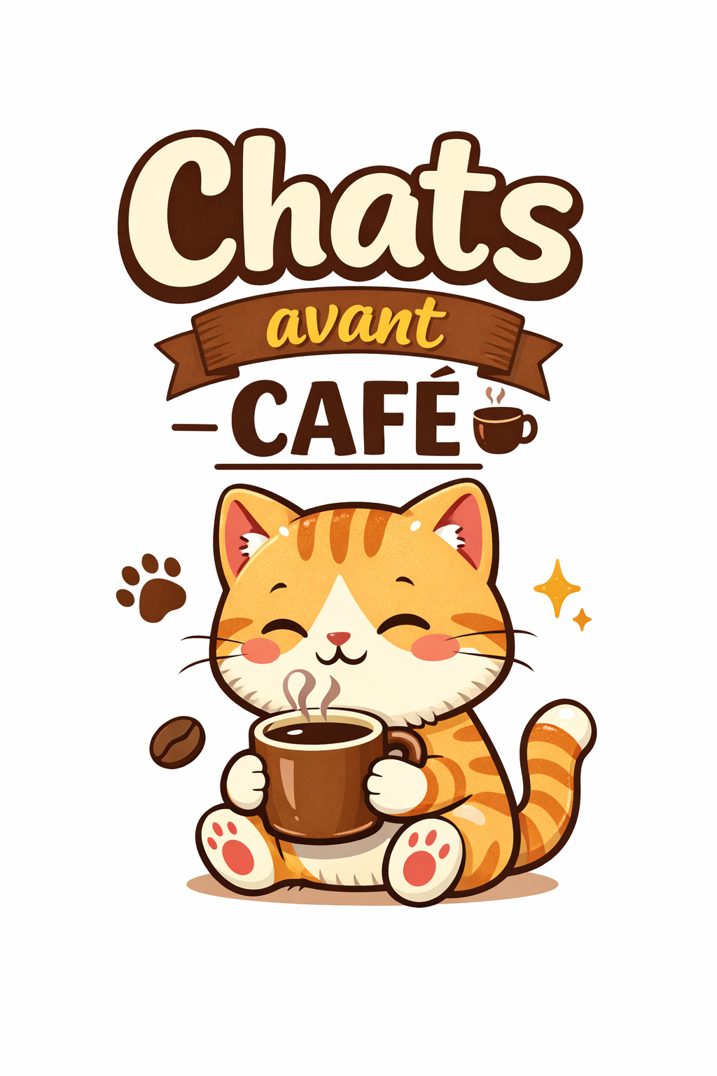Illustration originale d'un chat adorable tenant une tasse de café. Un design parfait pour les amoureux des chats et des boissons chaudes !