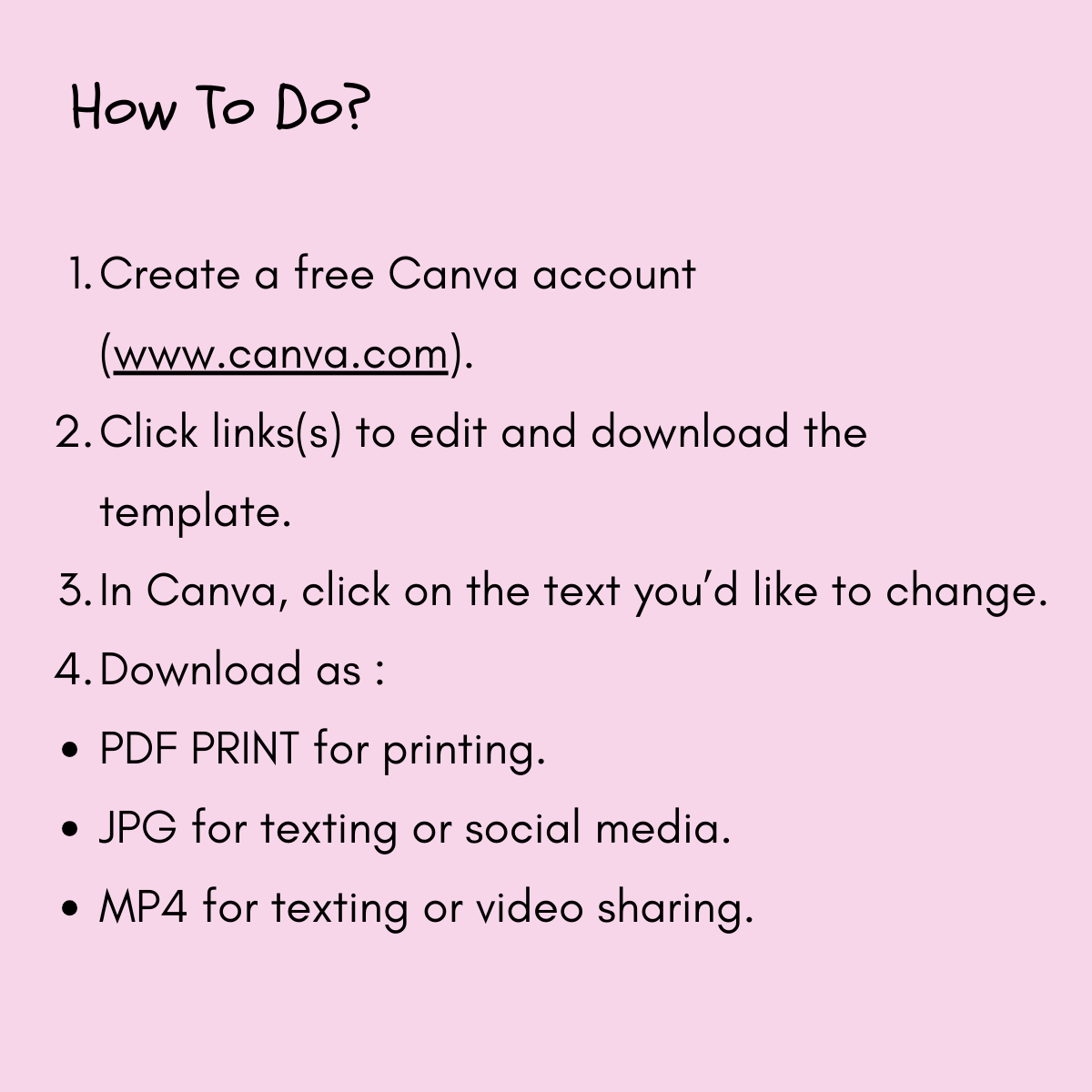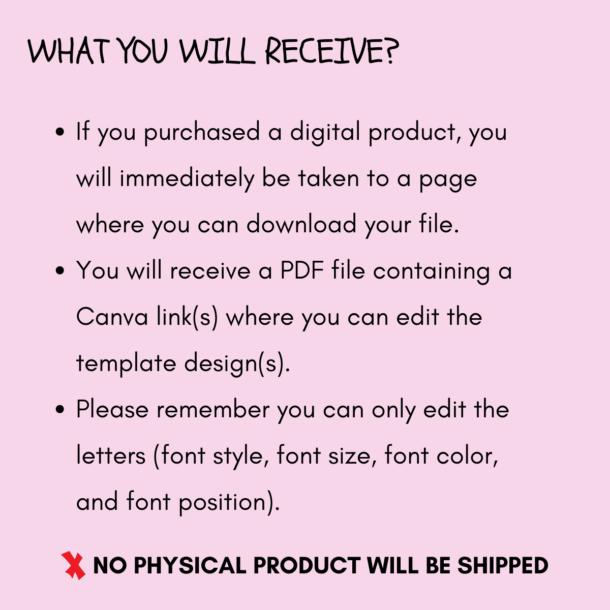 You can download the PDF file containing the template link(s) upon purchase and you can start editing your invitation!