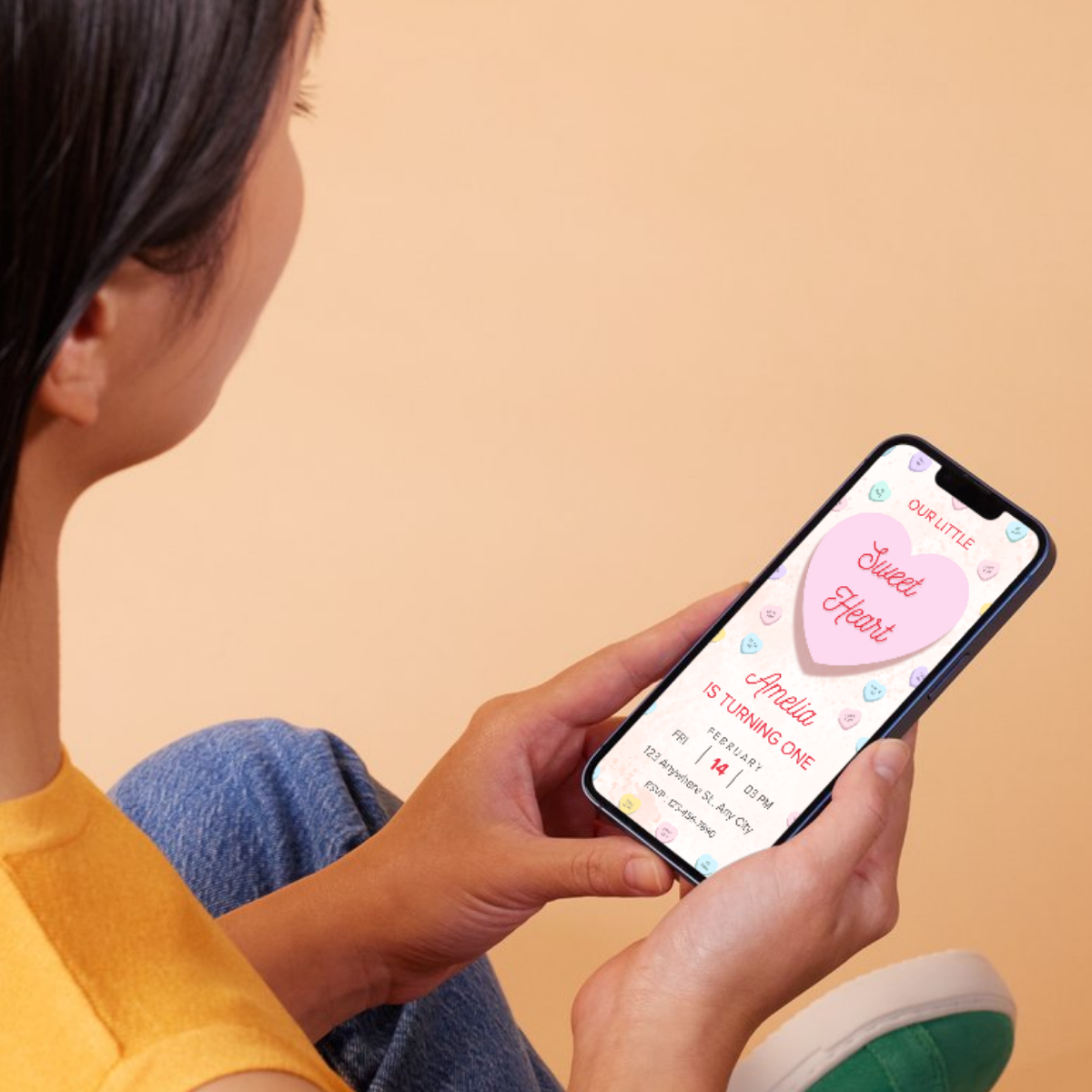 Introducing our lovely Editable Sweetheart Candy Birthday Invitation Template. Fully editable text, this digital invitation is perfect for any age and designed for easy sharing on mobile devices. Customize the text to fit your event details, and instantly send it to your guests for a memorable surprise celebration!
