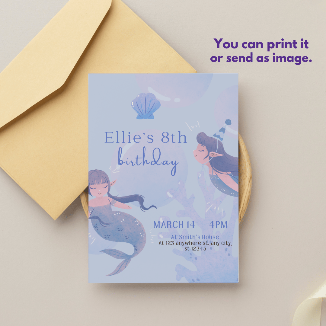 Make your celebration extra special with this delicate and classic mermaid-themed birthday invitation! Designed for women, adults, and kids alike, this printable and downloadable template is perfect for an elegant and dreamy underwater party.