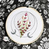 Perfect for all embroidery beginners who crave a touch of magic ✨ This enchanting crescent moon and floral pattern, designed for a 6" hoop, is perfect for weaving a little witchy wonder into your world. An elegant pattern for beginners!