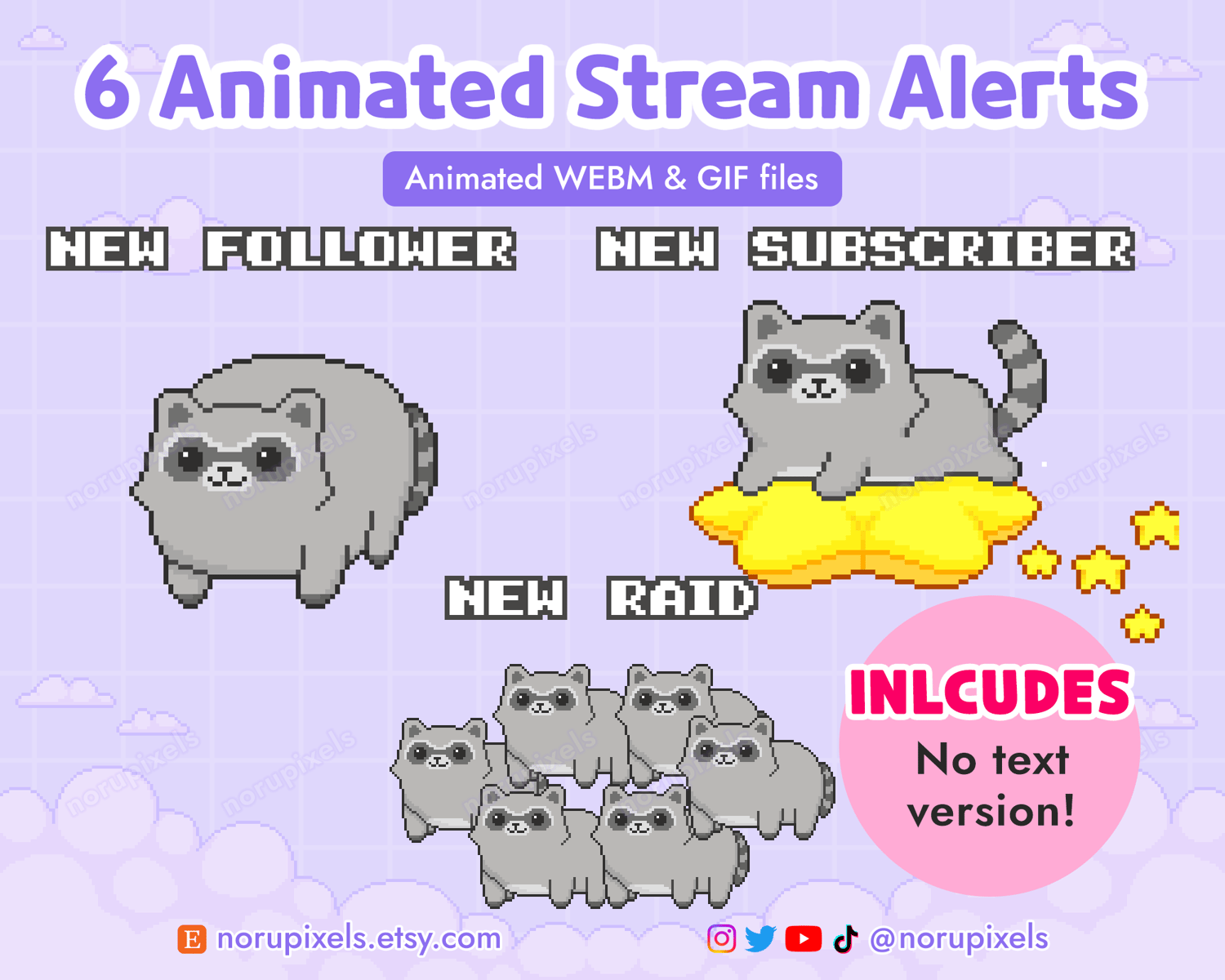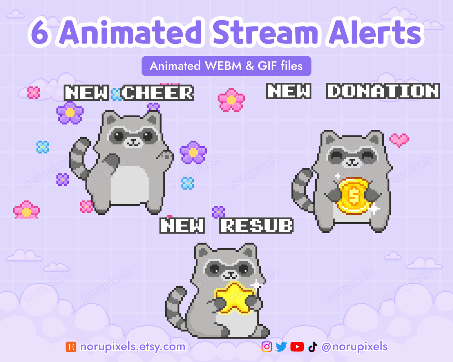 6 Animated Raccoon Stream Alerts Pack