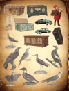Pull out your scissors and glue and dive into the magical world of vintage ephemera including people, leaves, insects, butterflies, animals, food and kitchen items, bees, botanicals, mixed ephemera elements of weird and unusual varieties, gardening, Thanksgiving, flowers, octopus, owls, fish, dancing, ballet dancers, birds, cars, dresses, men's hats, fruits, tags, button, mirror, typewriters, vegetables, mushrooms, clocks, hot air balloons, frame, fantasy characters from famous movies, pin up girls, St. Patrick's Day girls, wizards, anatomy and bones, skulls, and much more with this artistically beautiful clip art cut and collage book.