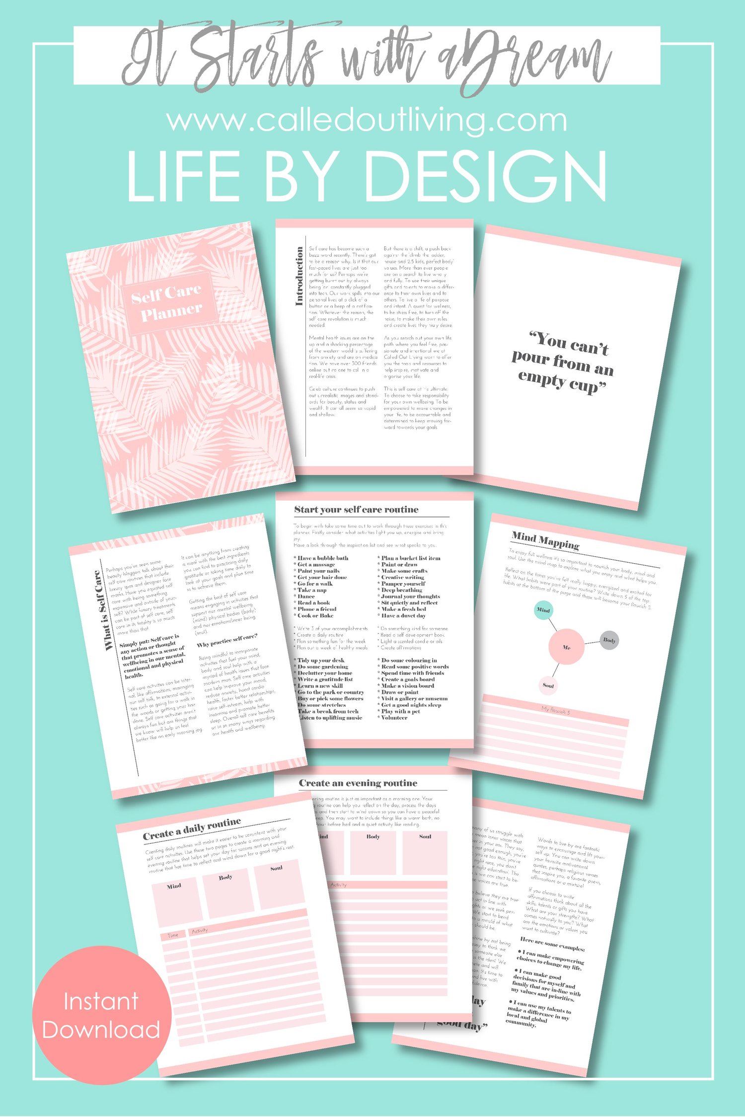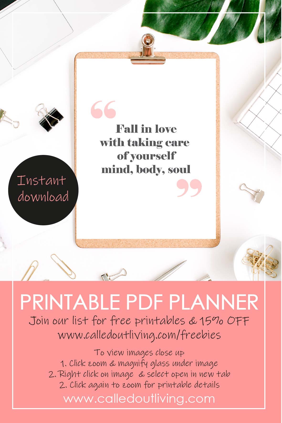 25 Planner sheets to help you practise self care, track goals, plan your day and celebrate your success. Support your mental health and well being with this printable planner and workbook in one.