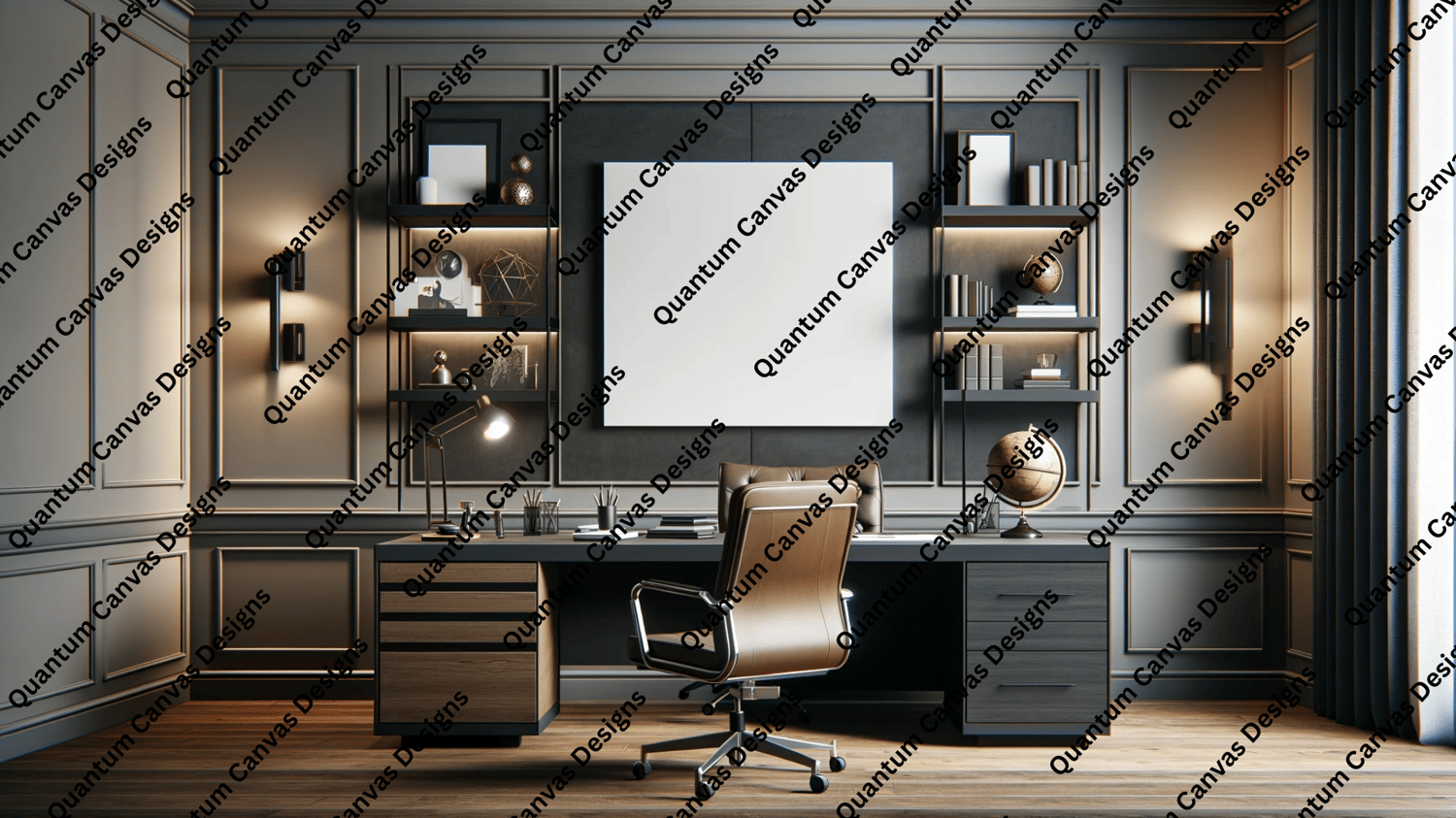Sleek, professional office with masculine aesthetics. Blank canvas to add the photo of your choice. (Editable in Canva 16:9 template)