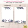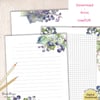 Printable Stationery Paper Set Blueberry Flower | Lined Unlined Grid Journal Page | Digital Letter Paper