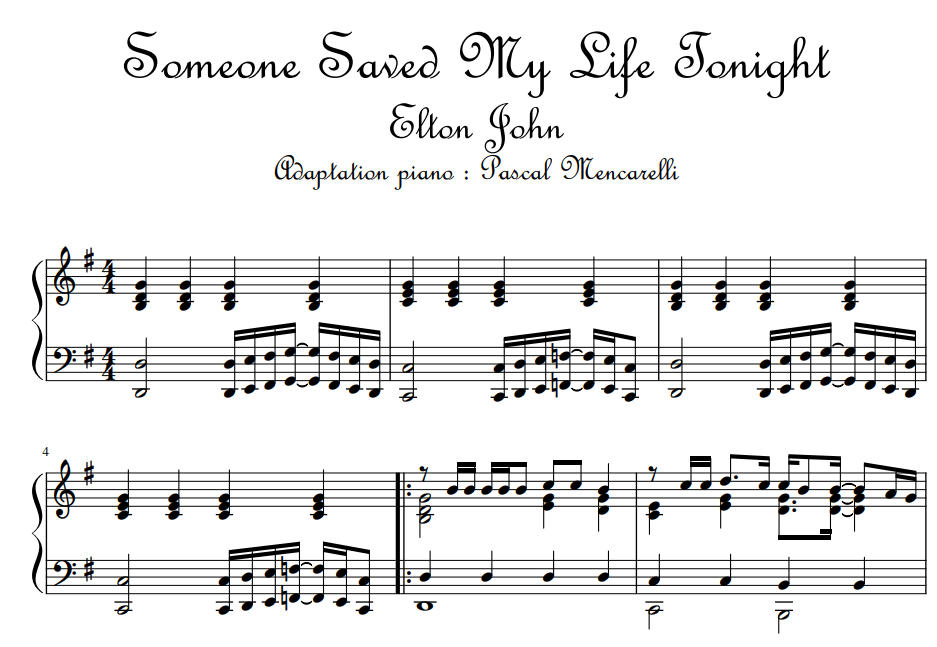 Elton John - Someone Saved My Life Tonight - Sheet Music for Piano Solo