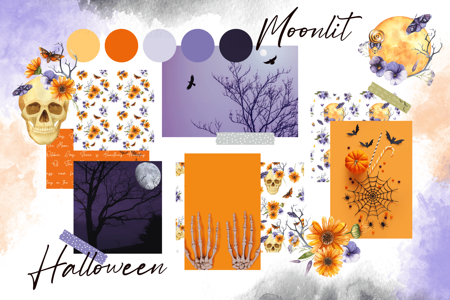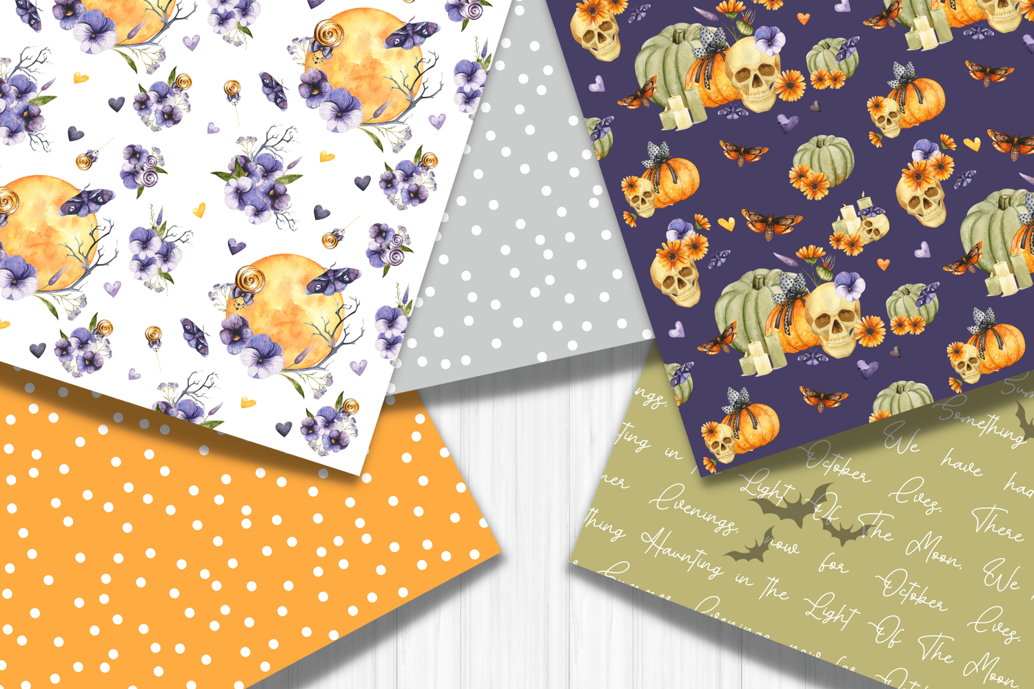 This Moonlit Halloween Watercolor Digital Paper Set is perfect for last-minute Halloween decoration, Halloween theme scrapbooking, digital scrapbooking layouts, digital creative projects, journal decoration, planner stickers, books and journals hardcovers, decoupage, lovely design projects, DIY project, handmade stationery, cards, photo books, Halloween theme party decoration, spooky party invitations, Halloween photo albums, gift wrapping, wrapping paper, packaging, printed paper items, tags, and much more! Have a spooky celebration! Boo!