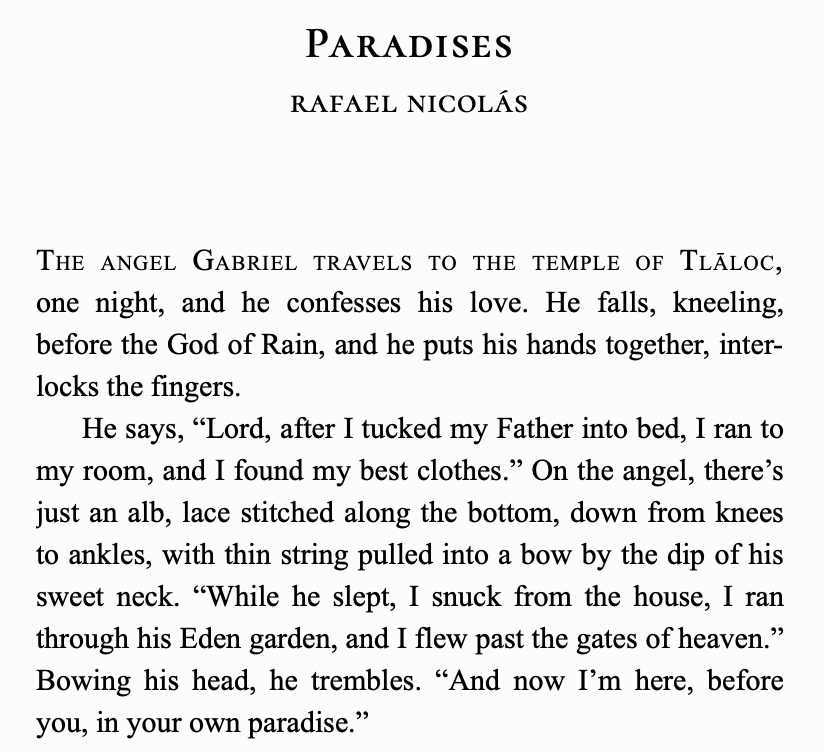 Originally printed in DEVOUT: AN ANTHOLOGY OF ANGELS, curated by Quinton Li
