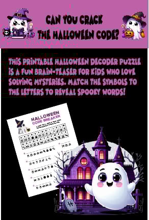 This printable Halloween Decoder Puzzle is a fun brain-teaser for kids who love solving mysteries. Match the symbols to the letters to reveal spooky words!