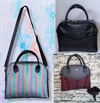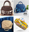 The Naked bag is a classic that can be made in fabric, vinyl, garment weight leather or the combination of your choice. Use the pattern to make at least three different looking bags. There is the “bare naked” bag with a plain front and back. The “half naked” bag has a pocket on the front or back. The “evening gown” has a sweetheart pocket on the front, and a curved pocket on the back.