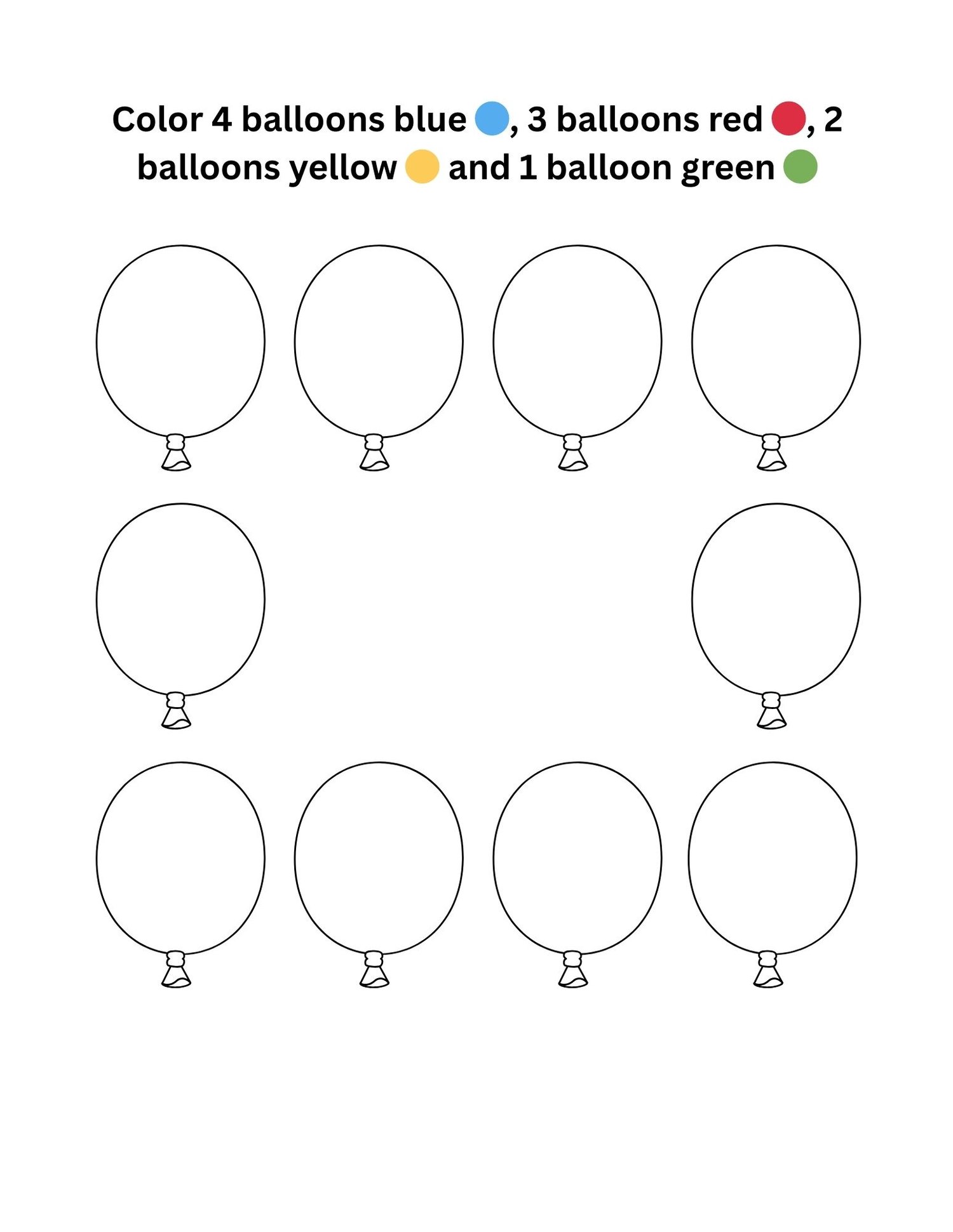- Numbers 1–10 with cute, kid-friendly objects to count and color
