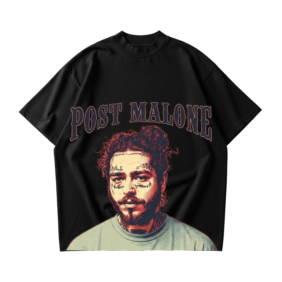 Post Malone Tribute Tee — Celebrate the eclectic style and musical genius of Post Malone with this bold, contemporary design. Featuring a stylized portrait with subtle vintage textures, this tee captures his laid-back charisma and unmistakable presence. Made from soft, high-quality cotton, it pairs effortlessly with joggers or layered streetwear, perfect for fans who want to showcase their love for music and modern urban style.