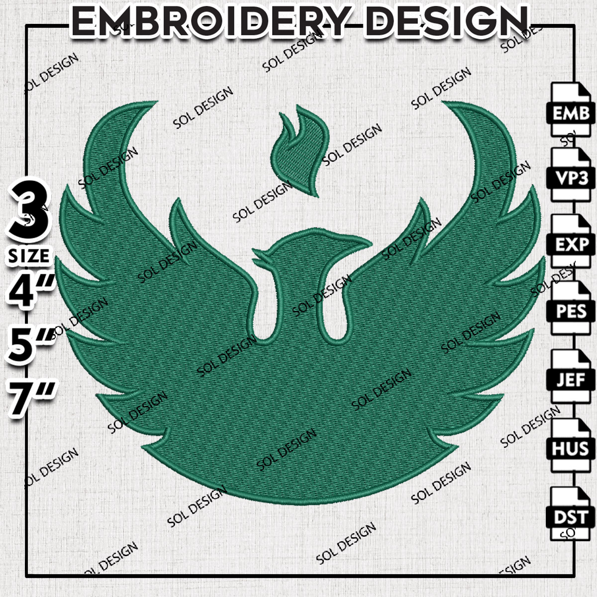 Green Bay Phoenix Embroidery Design Files, NCAA Green Bay Phoenix Machine Embroidery Designs, NCAA Logo embroidery designs, Ncaa Phoenix Logo, Digital Download
