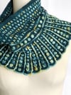 This top-down, flared cowl was inspired by Justice Ruth Bader Ginsburg’s famous (and fabulous) collar, worn when she dissented from a decision by the Supreme Court.