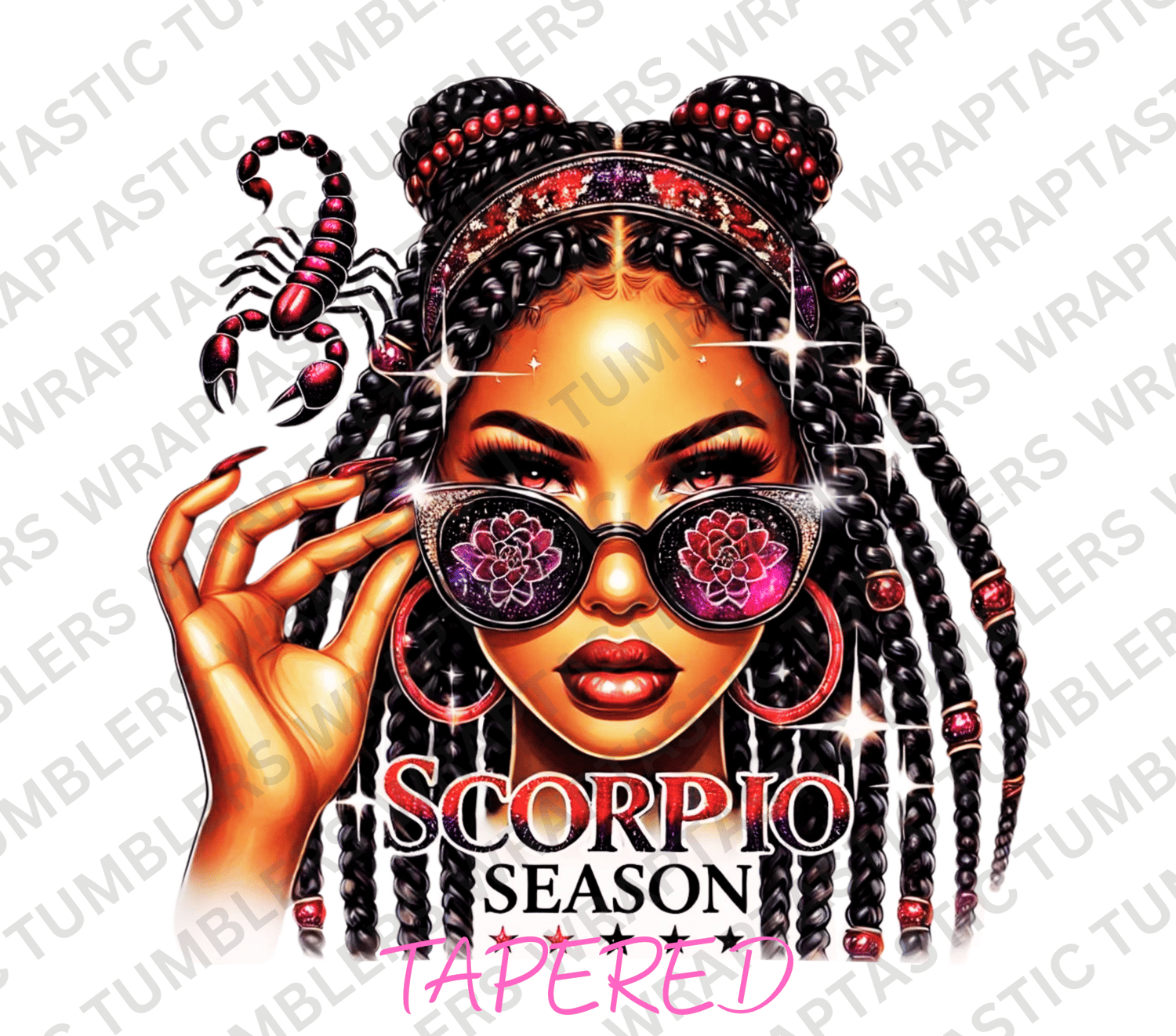 Embrace Scorpio season with this bold and stylish tumbler wrap! Featuring a fierce braided hair look, scorpion accents, and eye-catching sunglasses, this high-res PNG is perfect for 20oz sublimation tumblers. Instantly downloadable to craft unique zodiac-inspired tumblers!