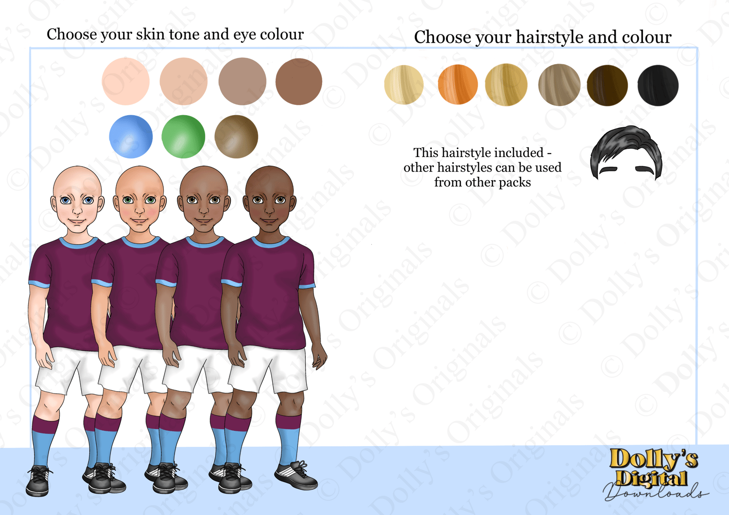four different skin tones, three eye colours and 6 hair colours)