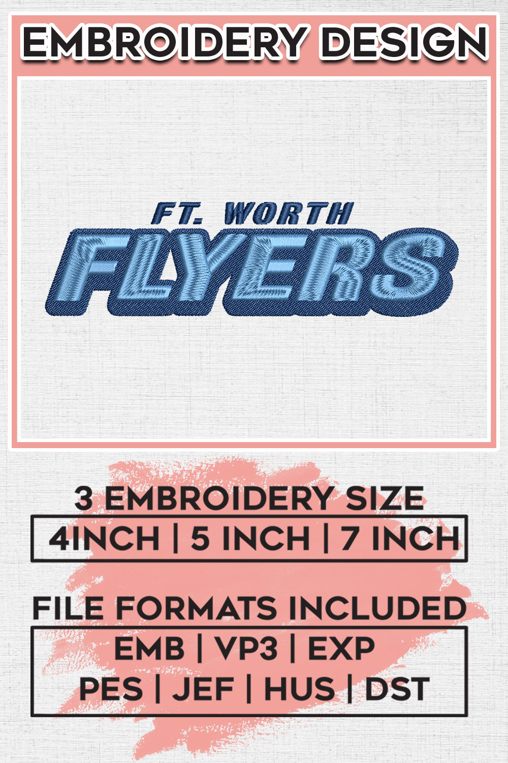 NBA G League Fort Worth Flyers Team Writing Logo Embroidery Designs, NBA G League Fort Worth Flyers Logo Machine Embroidery Files, NBA G League Basketball Team Logo embroidery designs, NBA G League Flyers, Digital Download