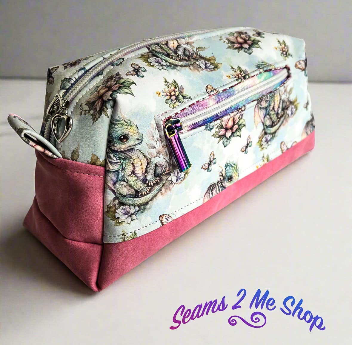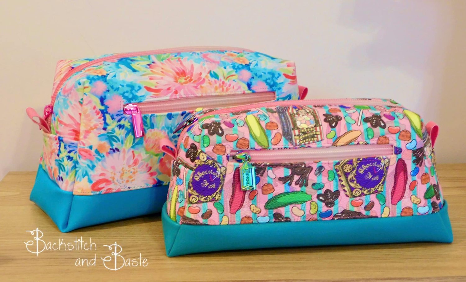Cosmetica and Cosmetini are projects suitable for enthusiastic beginner sewists. Cosmetica is a make up-cosmetic bag measuring approximately 11.5” (29.2cm) wide, 5.5” (14cm) tall and with a depth of 4” (10. 2cm), and Cosmetini a smaller version measuring approximately 10" (24.5cm) wide, 4.5" (11.4cm) tall and with a depth of 3.5" (9cm). Both versions are identical in constructions with a main zip closure, a fully lined exterior zip pocket and options for one or two interior slip pockets. They are constructed using a boxed method with no internal binding and turn through either the exterior zip pocket or through the lining at your preference.