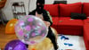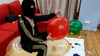 In the first video he blow and pop balloons. Duration: 2 Min 50