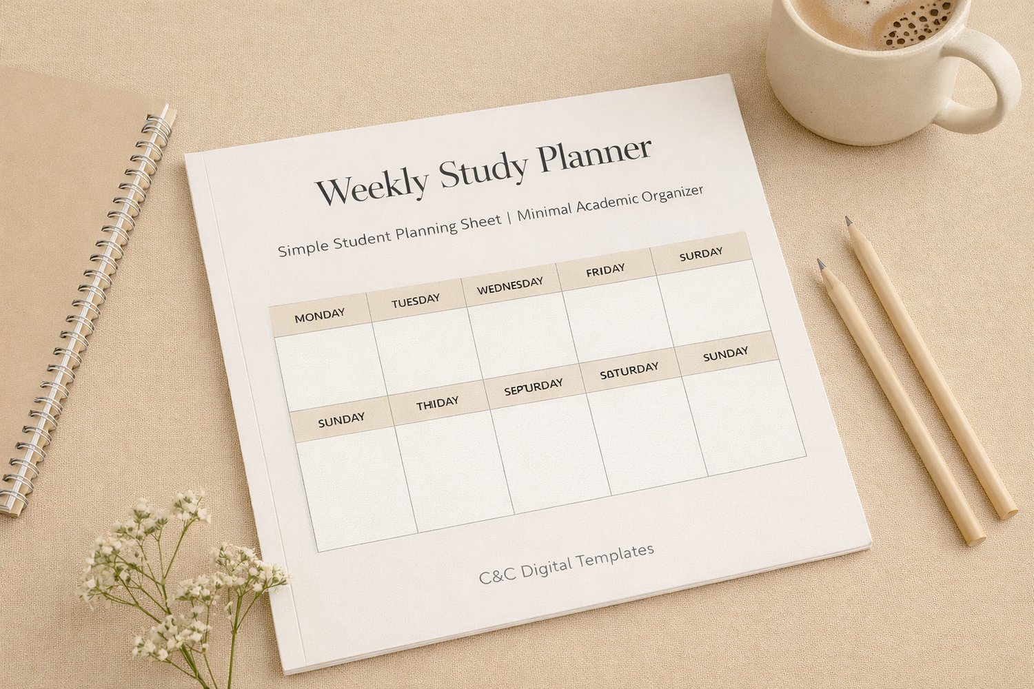 Weekly Study Planner – Simple Student Planning Sheet | Minimal Academic Organizer