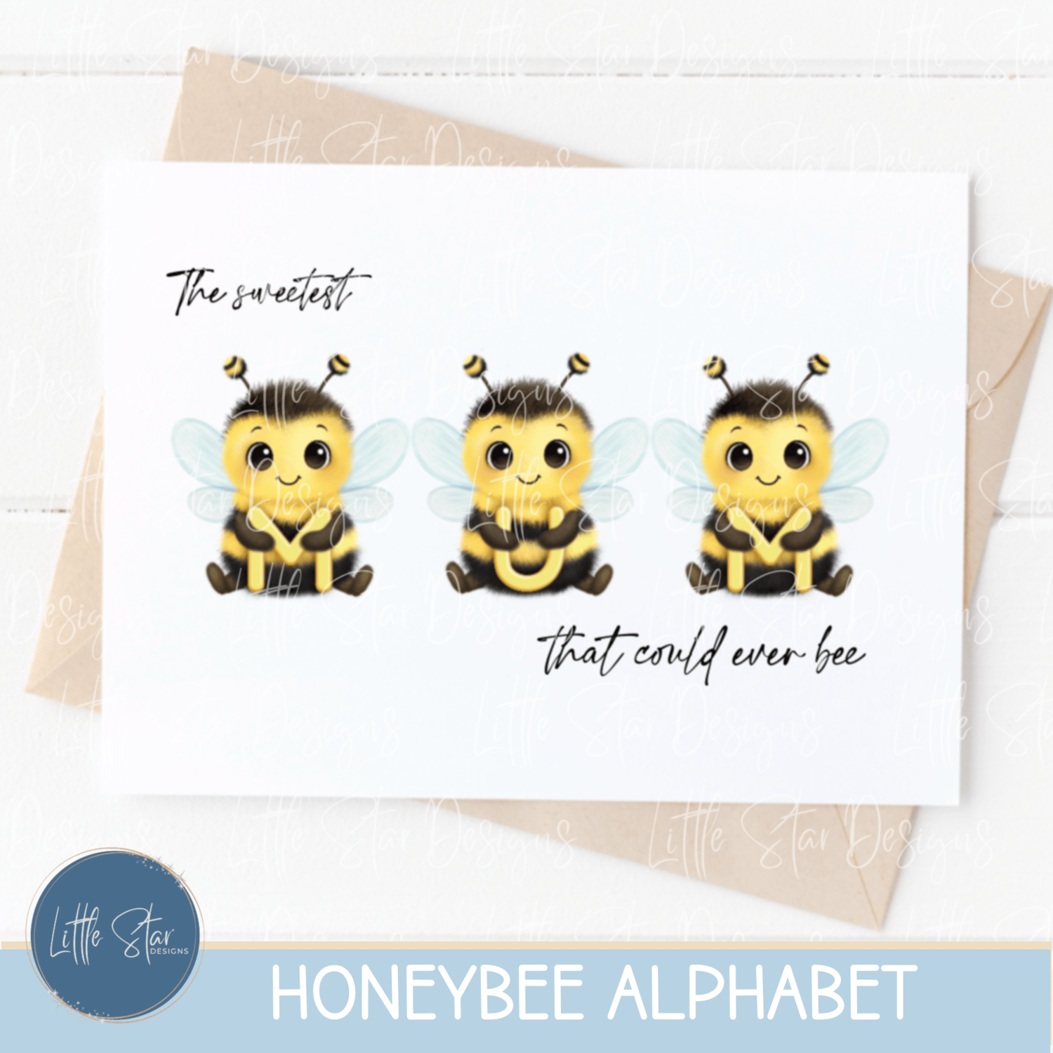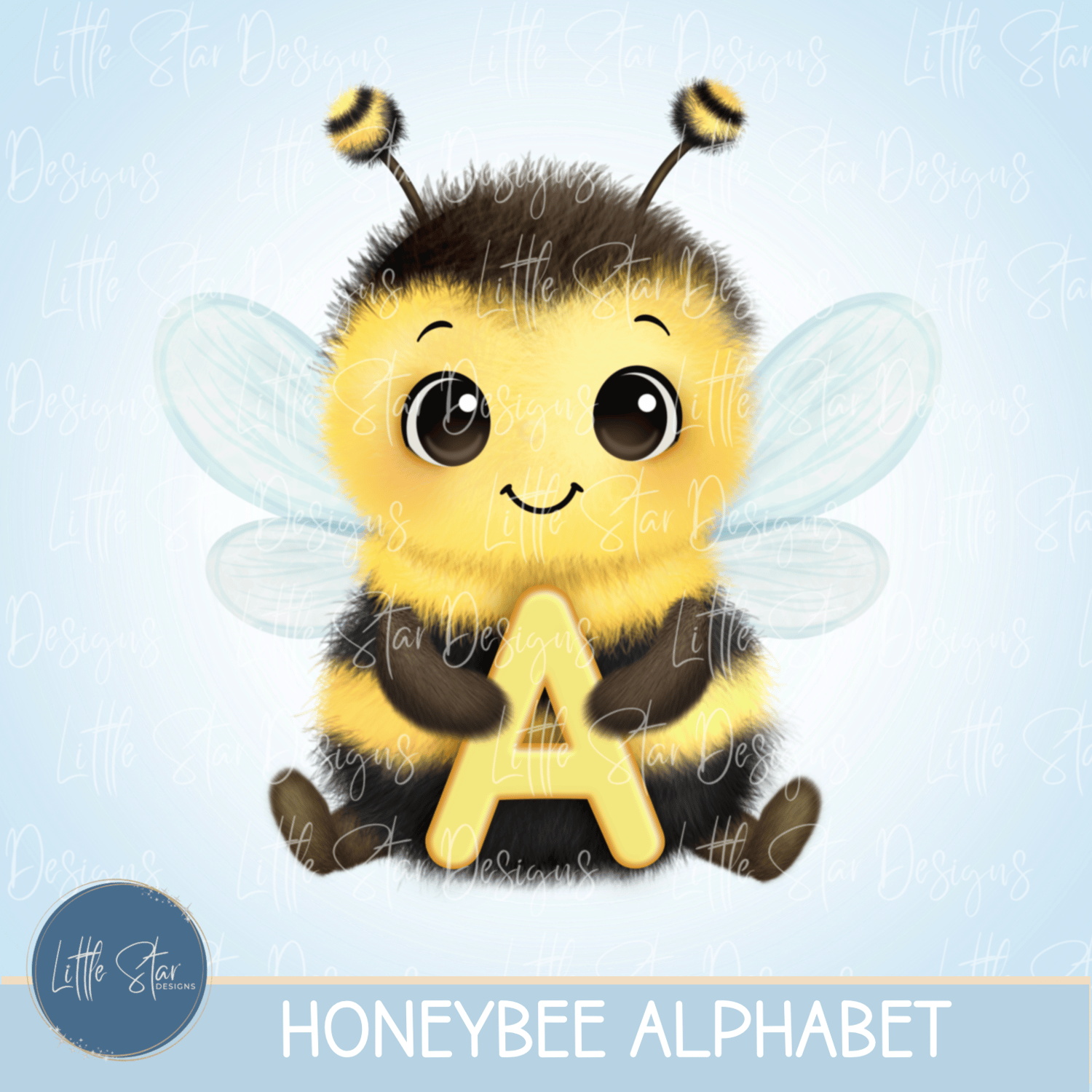 This is a high-quality hand drawn (300dpi PNG) clipart set digital download of my original artwork, titled “Honeybee Alphabet”, designed for sublimation and print.