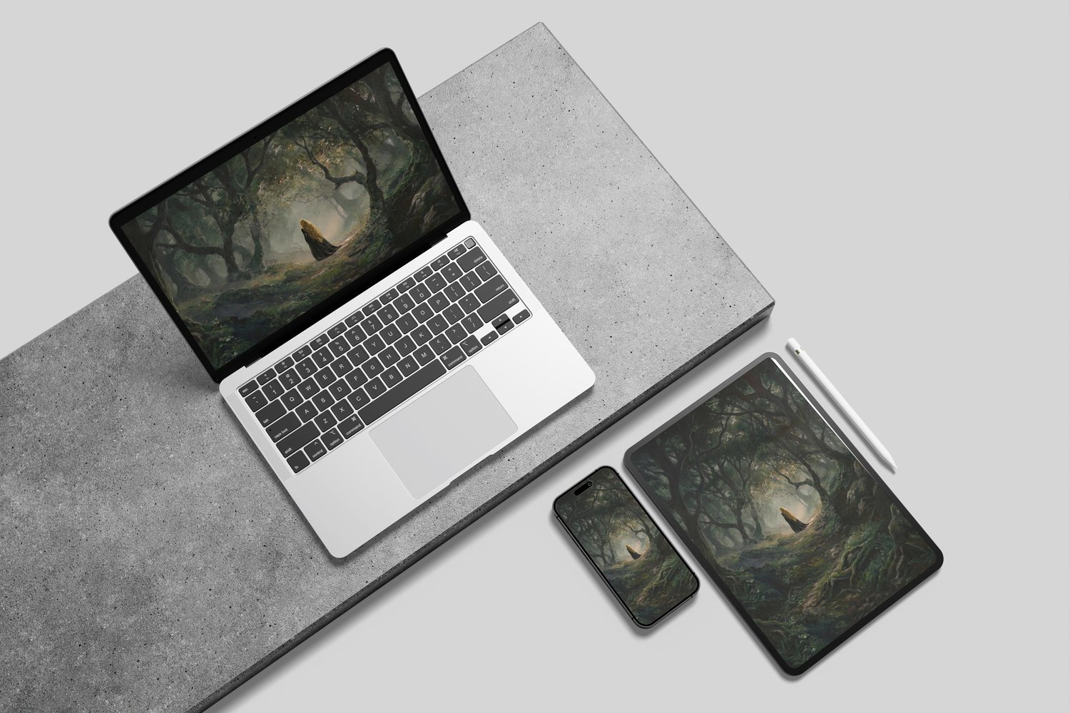 Under the Vigil of Ancient Trees – Medieval Forest Gothic Wallpaper Set
