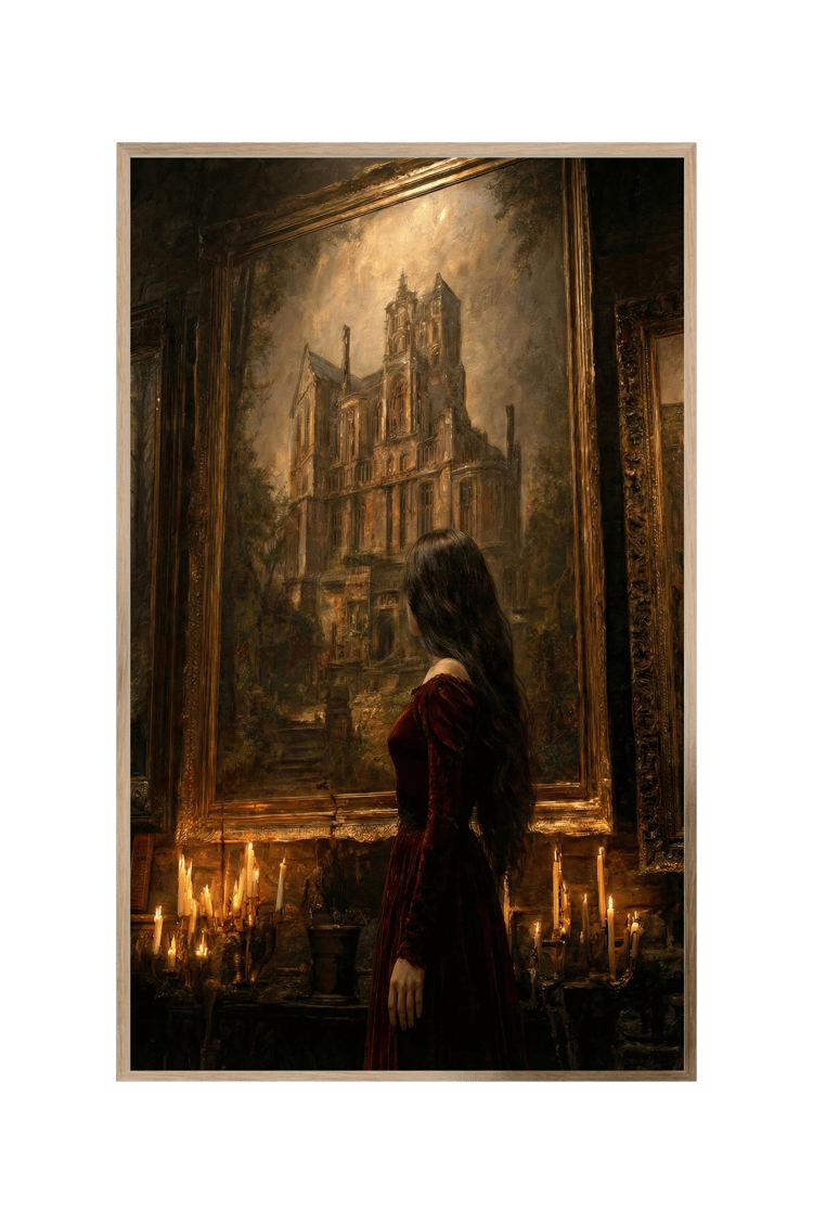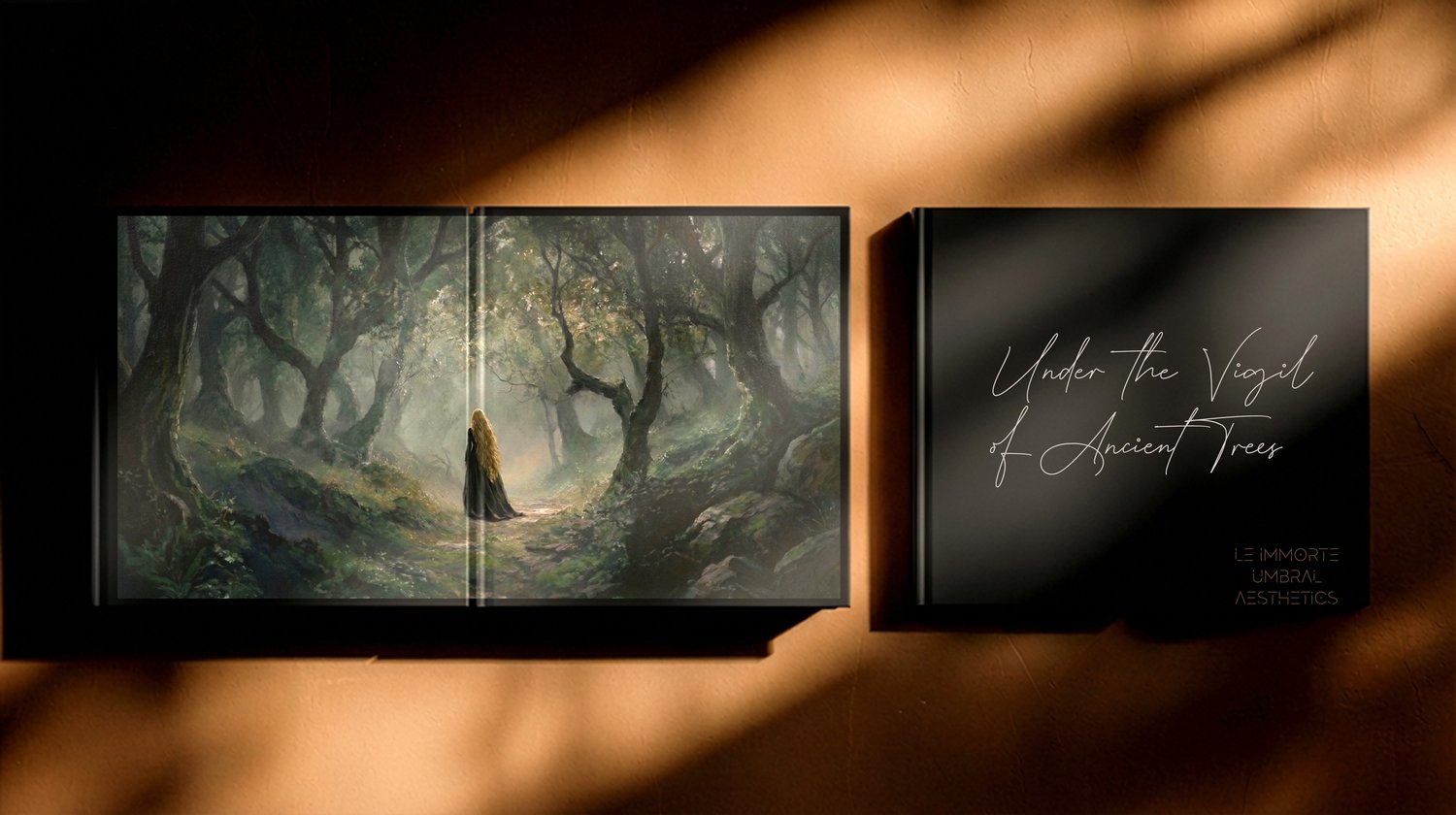 “Under the Vigil of Ancient Trees” evokes the solemn beauty of medieval folklore: a world where forests breathe, shadows linger with intent, and every step feels like a whispered invocation. Rendered in the signature gothic pastoral style of Umbral Aesthetics, this artwork brings a haunting serenity to any screen or print.
