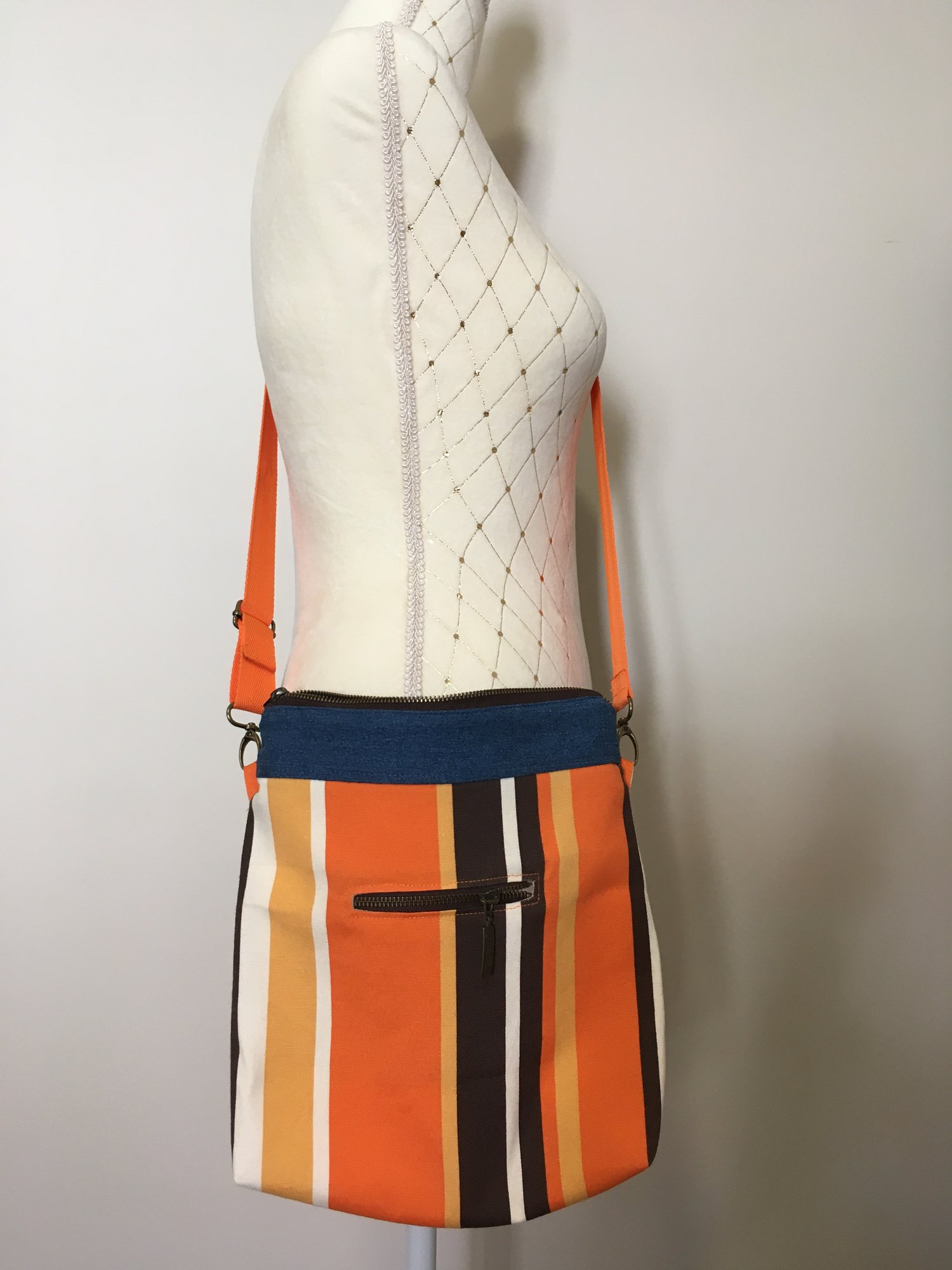 Upcycled Crossbody Bag with Adjustable Strap & Pockets β Handmade from Reused Jeans & Cotton, Eco-Friendly