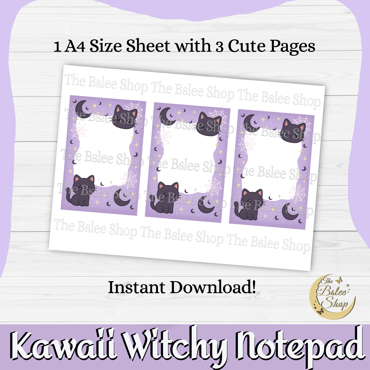 Create your own cute magical world with these kawaii purple witchy pages. You can make an adorable notepad, write down your recipes, notes and so much more! These kawaii pages can also be used in projects such as scrapbooking, journaling and collage. You will get 1 A4 size sheet with 3 cute witchy pages, you can print as many sheets as you wish! Save time by instantly downloading the items, there is no shipping cost.