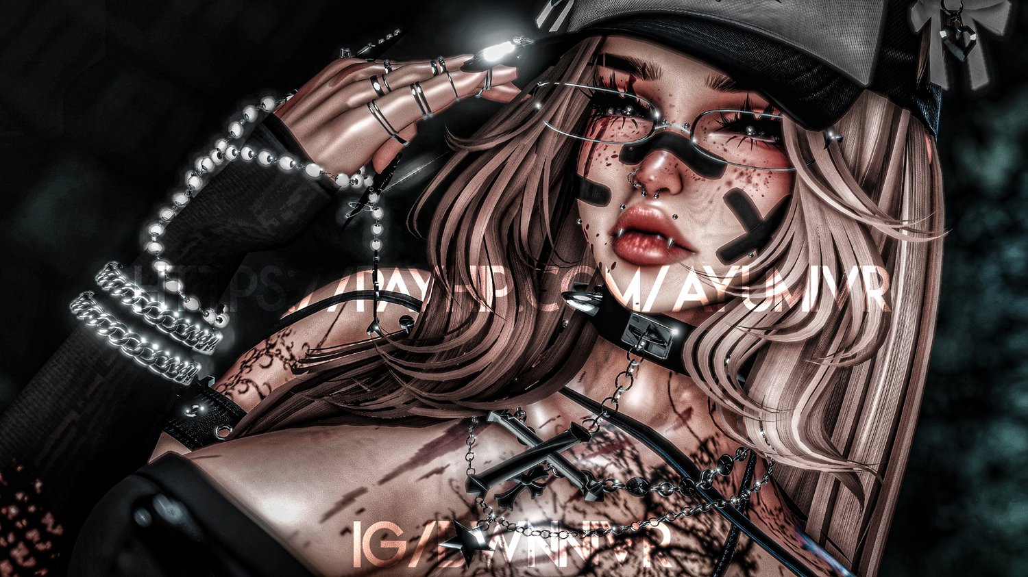ACCESSORIES: ┈・straps - nauuki ┈・chains - yuri ┈・belt - ruski ┈・choker - cheeze ┈・fishnets - nauuki ┈・arm warmers - jayyundead ┈・bandaids - berryvee ┈・bow gag - cake vr ┈・eyepatch - suki ┈・garters - meeva ┈・bunni - nyaowoh ┈・earings - suki ┈・halo - aii0 ┈・rosery - cake vr ┈・glasses - kijiio ┈・rings - nauuki