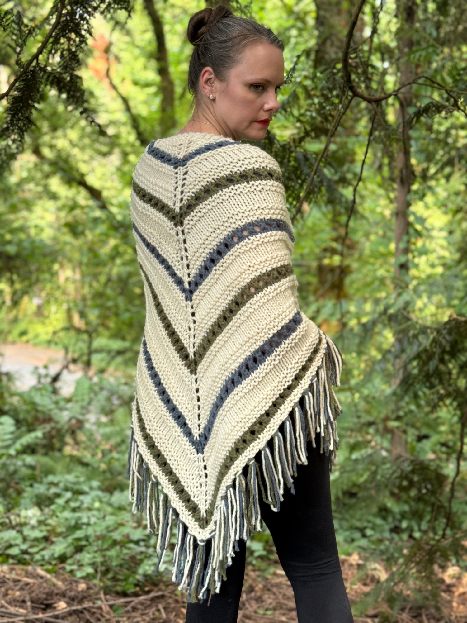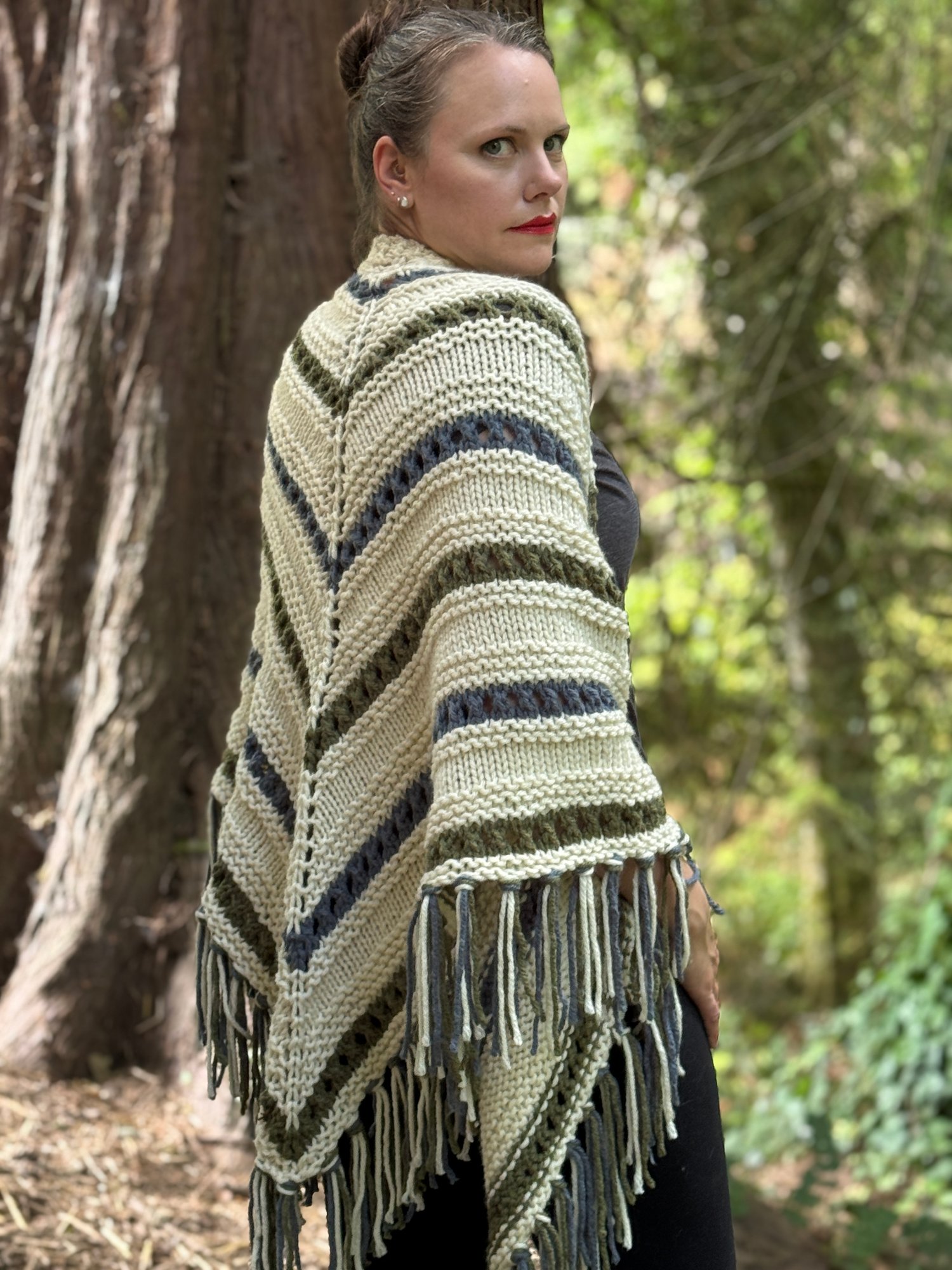 Inspired by this personal history, I created Etta’s Shawl. This oversized triangle shawl is designed for instant gratification, knitting up quickly with an easy-to-memorize repeat that