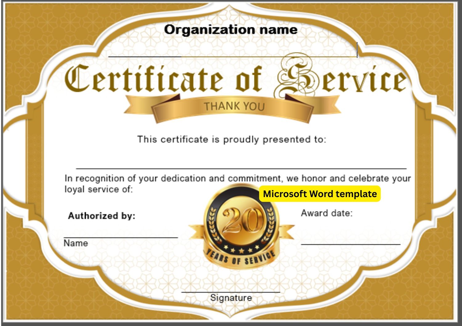 20 Years of Service - Editable Microsoft Word template with logo tailored with number of years G202L200065