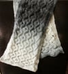 In the Farseer Series by Robin Hobb, Six Duchies Queen Kettricken hails from the Mountain Kingdom. In tribute to the Queen’s mountain origins, this lovely lace scarf depicts an expanse of diamonds each holding a single mountain peak.