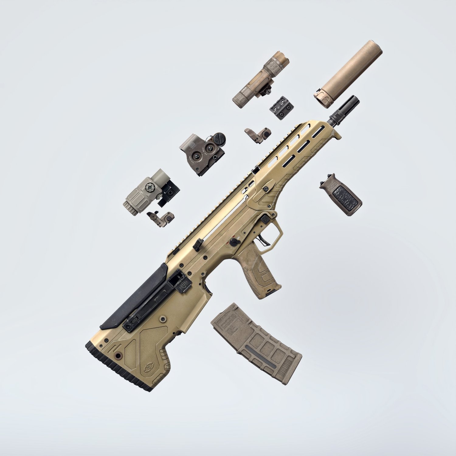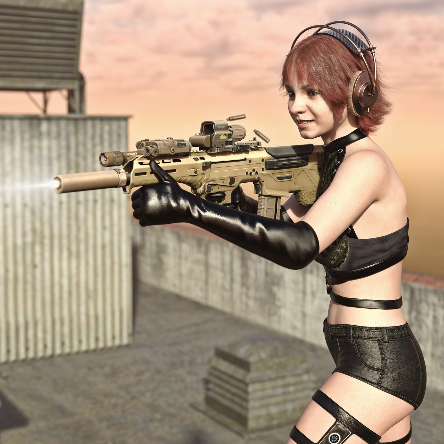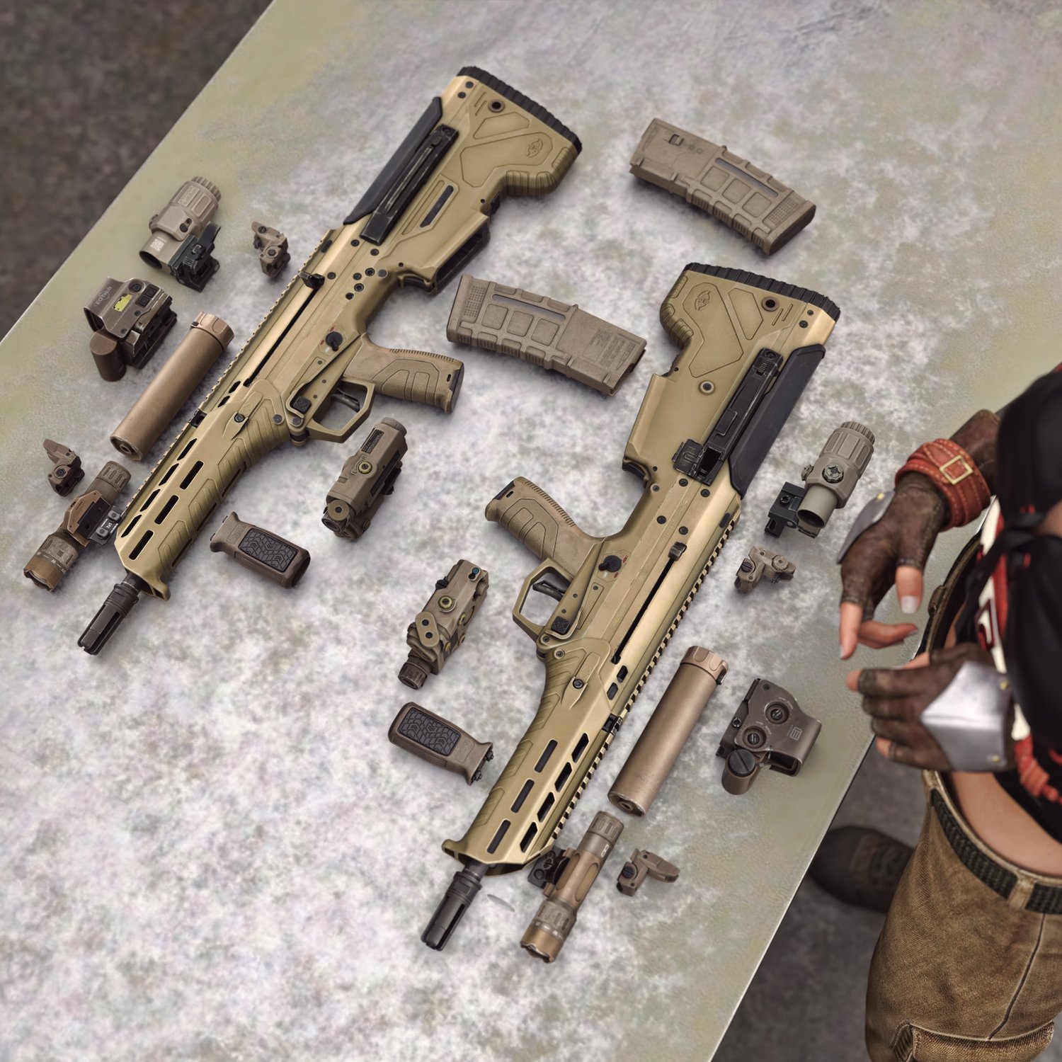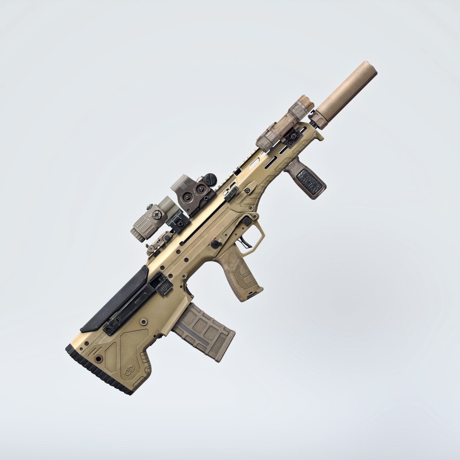 A superb looking modern bullpup rifle. Designed in the late 10s, it went through several improvements. Designed as fully ambidextrous, it combined the looks with functionality. Includes a silencer, red dot sight, a magnifier, a light and a front grip. Iron sights are also rigged in case you want to upgrade. Trigger, safety, bolt, Charging handle etc also rigged for more realistic pictures. The prop is converted and rigged for use in DAZ.