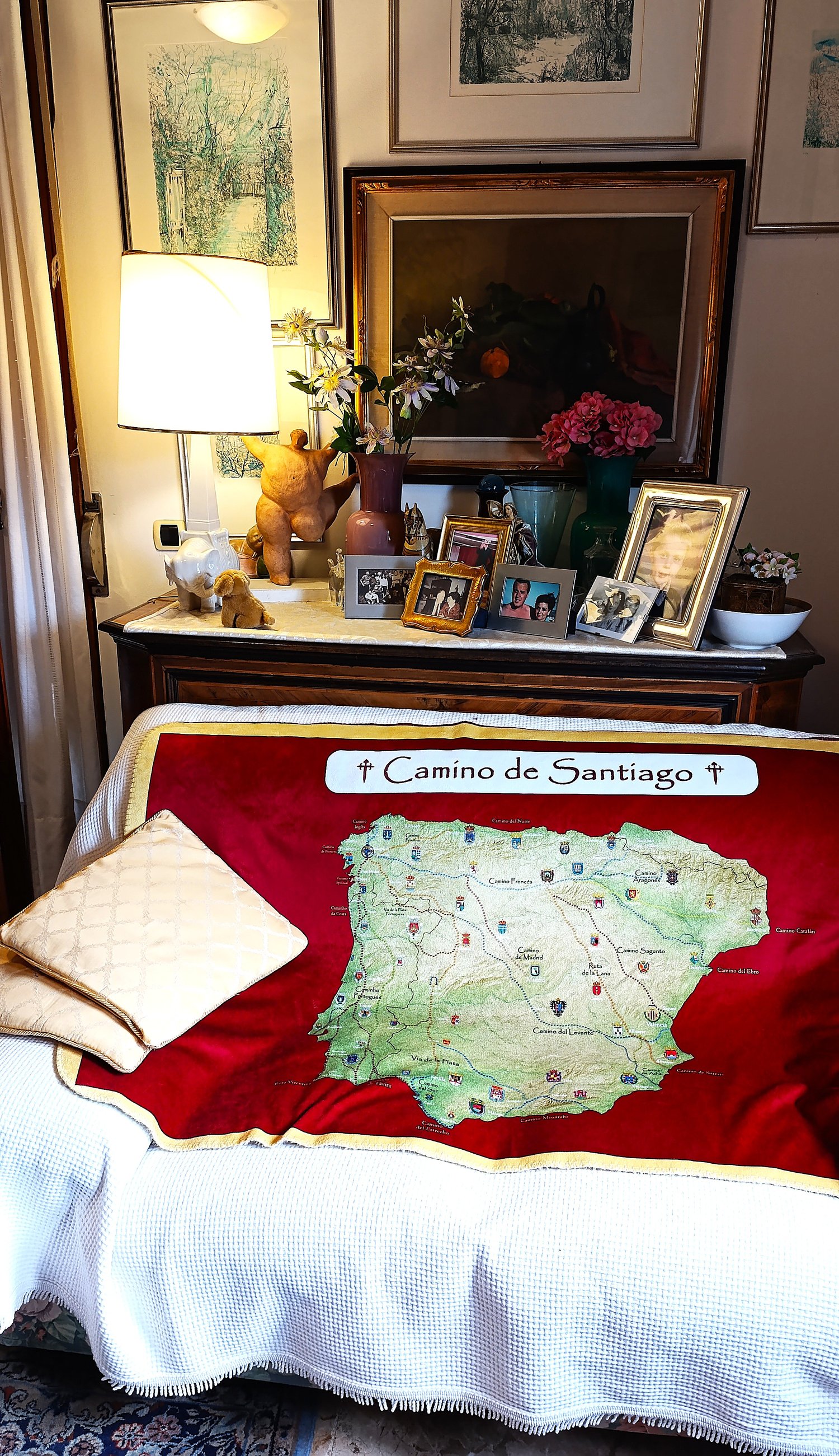 Che tu sia spaparanzato sul divano o che tu stia ripensando al tuo pellegrinaggio, questa coperta è come un lungo abbraccio dai tuoi amici del Cammino. E non è solo un modo per convincerti: il comfort e i dettagli risvegliano davvero e inevitabilmente emozioni e ricordi del cammino creando spunto per nuovi viaggi.