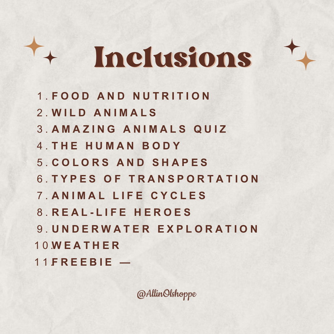 ✨Topics include animals, food, transportation, cartoons, general knowledge & more!