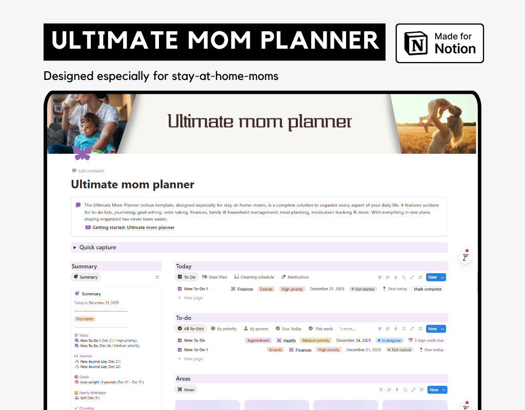 - Today’s Tasks and This Week’s Tasks (for focused daily and weekly planning)