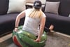 deflating two Intex balls by sitting