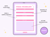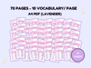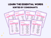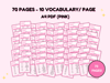 The words are sorted by consonants with 10 vocabulary per page so you can study just that every day for just 70 days. Study trackers with space repetition method are provided as bonuses so you can use them to revise your words. You can write down your vocabulary with related visuals and test yourself on the words with the dictation sheet.