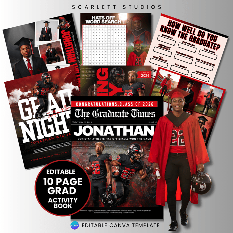Celebrate the graduate in a fun, memorable, and meaningful way with this 8-Page Editable Canva Graduation Activity Book Template — the perfect keepsake for graduates, parents, and family to enjoy together! 🎓✨