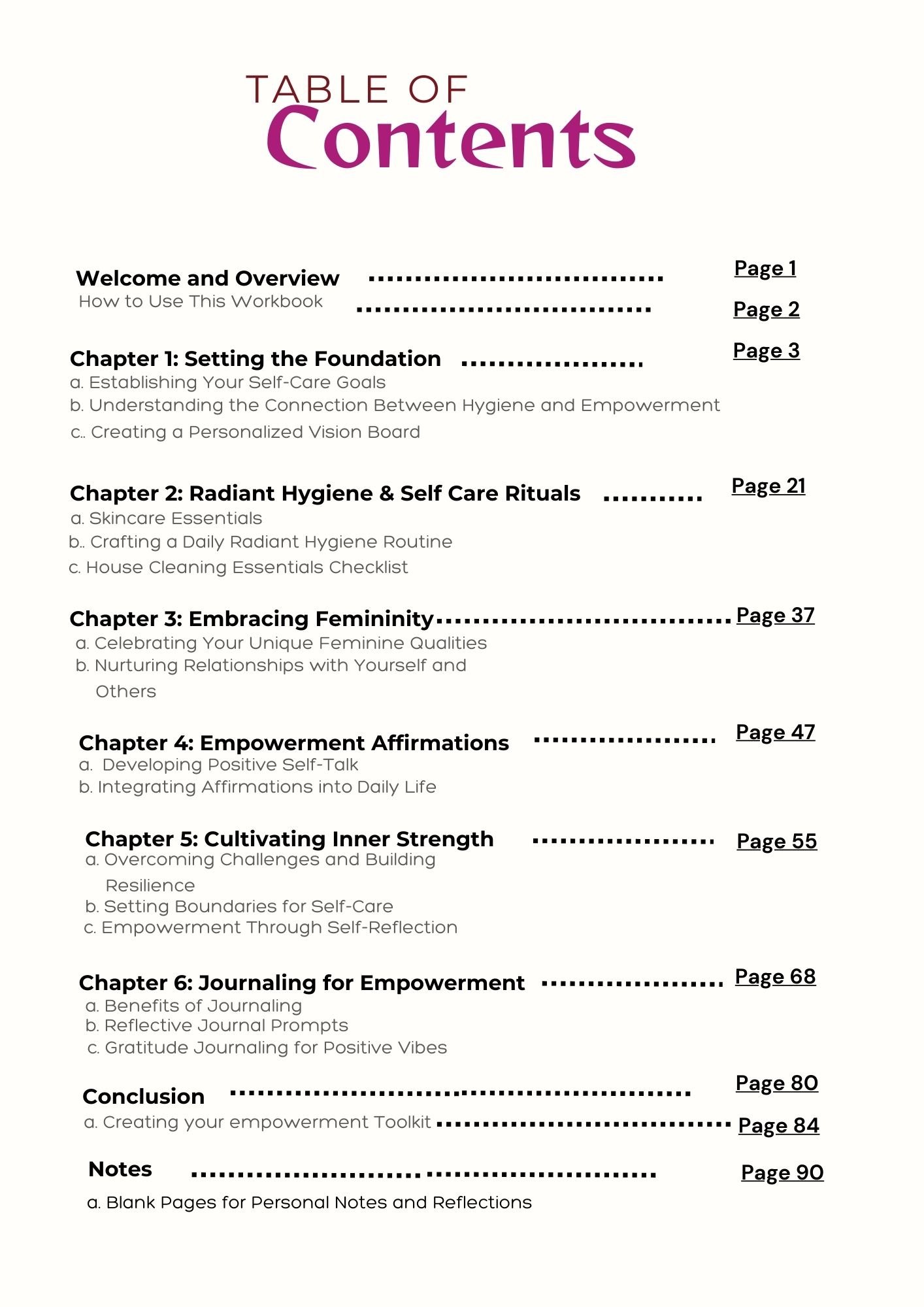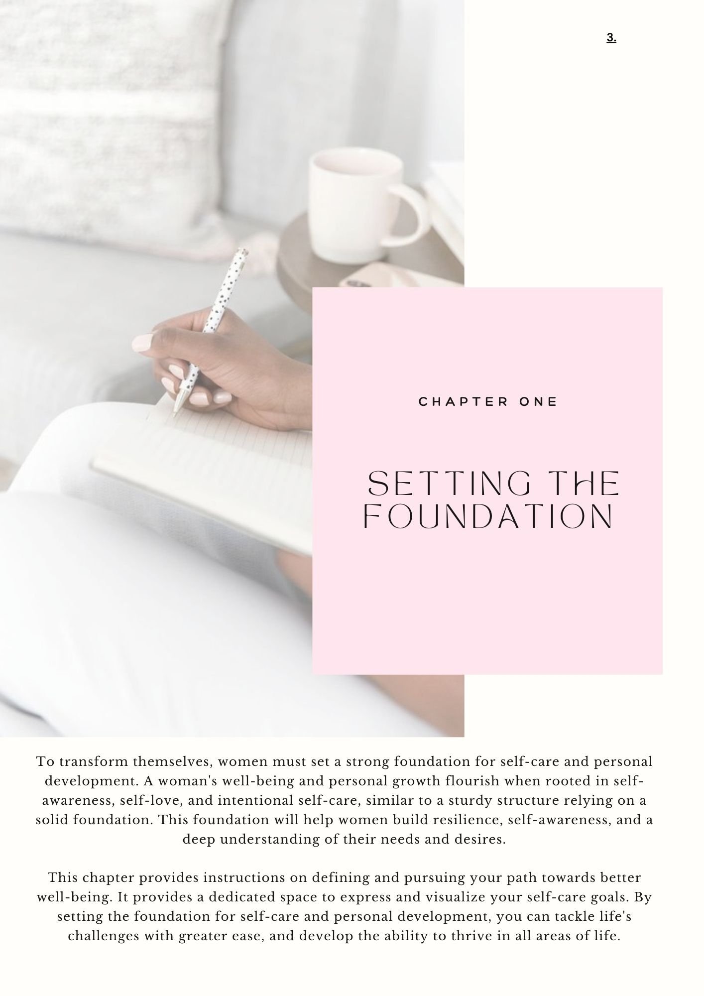 This self-care journal and workbook is the ultimate guide for women who are looking to develop their confidence and embrace their femininity. It combines personal hygiene and empowerment, providing you with powerful practices that will help you discover and unleash your true potential. Get ready to take charge of your life and feel empowered like never before through: