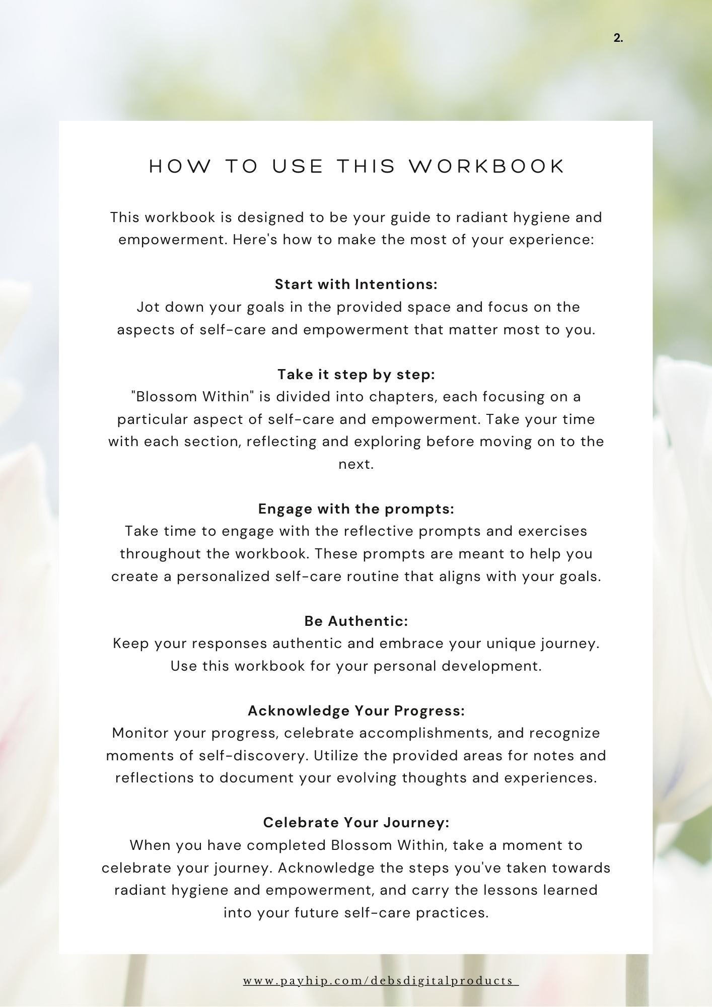 Blossom Within: A comprehensive Self-Care Journal and Workbook for Women Hygiene and Empowerment