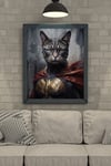 Unleash the power of paws with this heroic Super Cat Defender Wall Art! 🦸♂️🐱