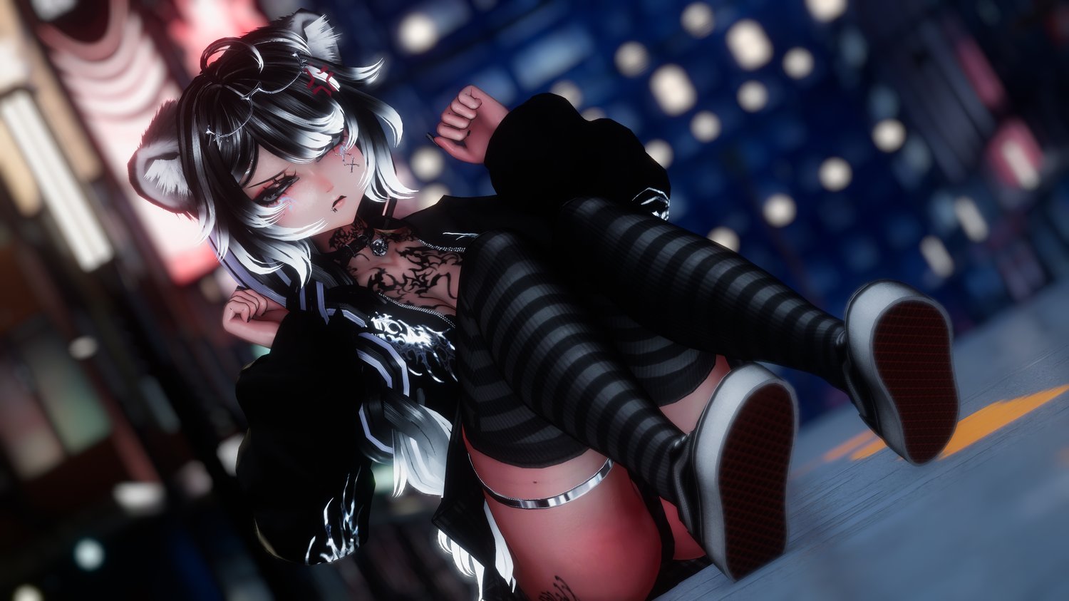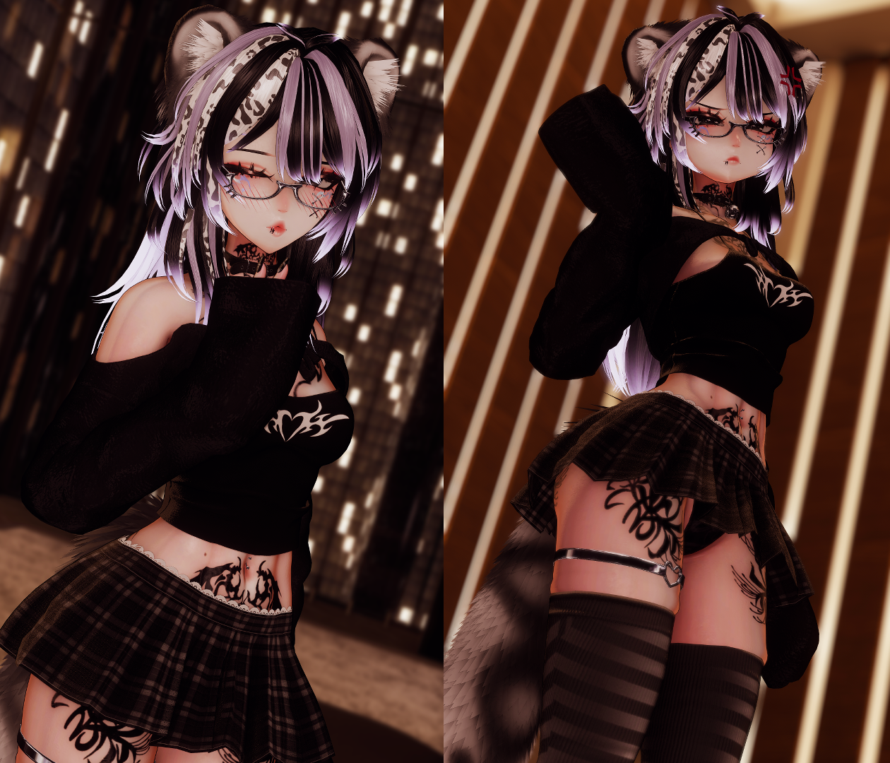 Accessories: Hair clip, collar, belly piercing, lip piercing, face lace